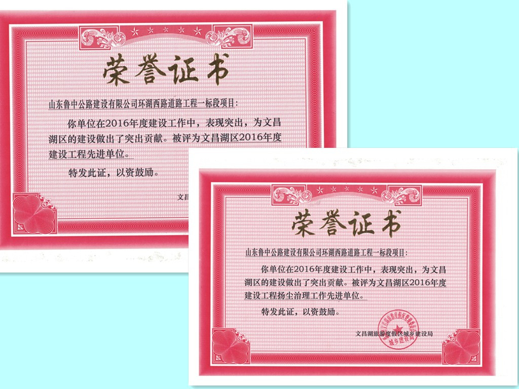 經(jīng)過一年的努力,項目施工得到建設(shè)單位、質(zhì)安站等單位的一致認(rèn)可,在2017年2月20日舉行的“文昌湖區(qū)建設(shè)系統(tǒng)2016年度考核表彰大會”中,獲得“文昌湖區(qū)2016年度建設(shè)工程先進單位”及“文昌湖區(qū)2016年度建設(shè)工程揚塵治理工作先進單位”榮譽稱號,項目經(jīng)理及總工分別獲得文昌湖區(qū)2016年度建設(shè)工程優(yōu)秀項目經(jīng)理及先進個人。