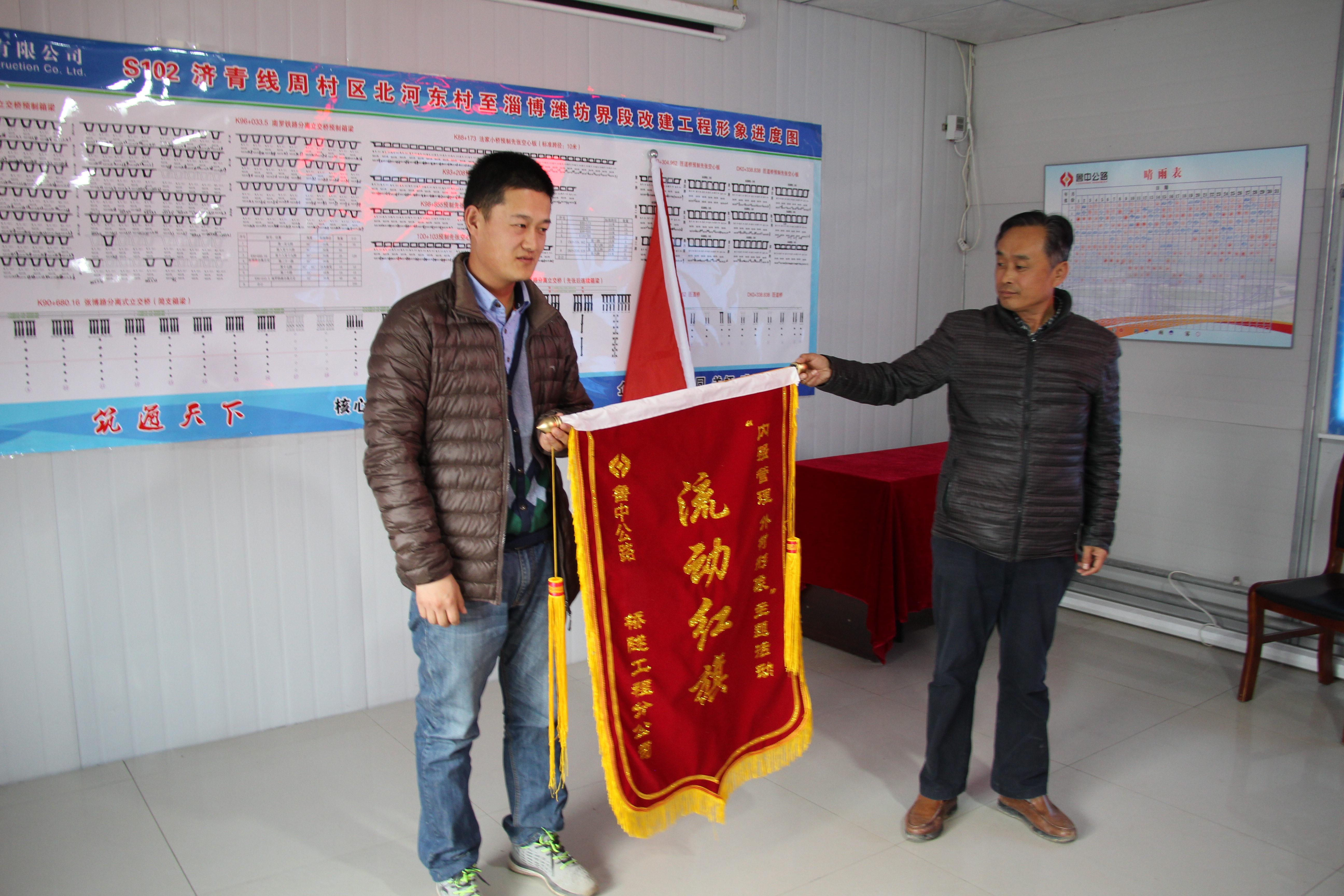 動(dòng)員會(huì)最后,由橋隧分公司技術(shù)總工宋勇將主題活動(dòng)的流動(dòng)紅旗授予了在去年獲得“省級(jí)安全文明工地”榮譽(yù)稱(chēng)號(hào)的馬南路孝婦河橋梁工程項(xiàng)目部。