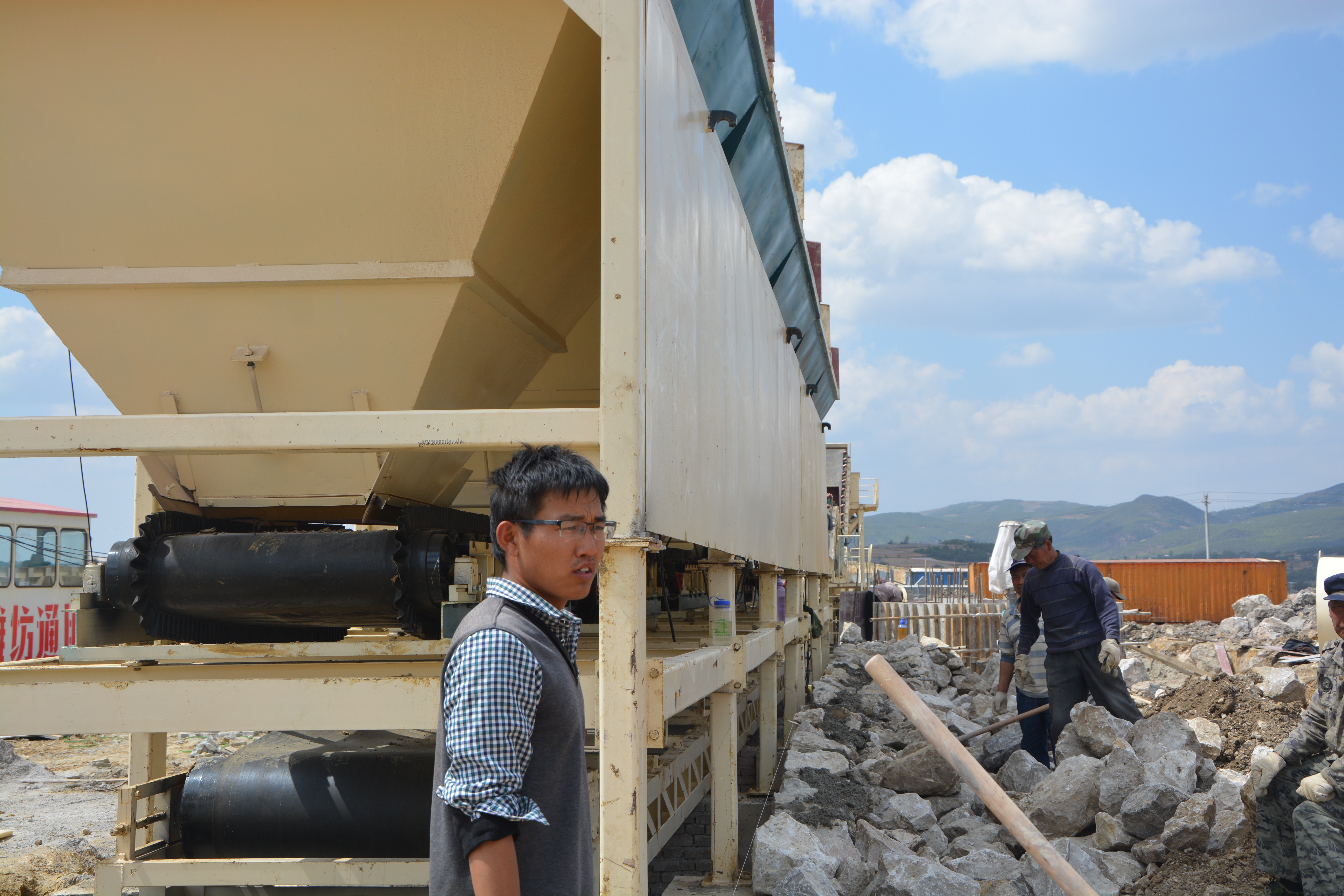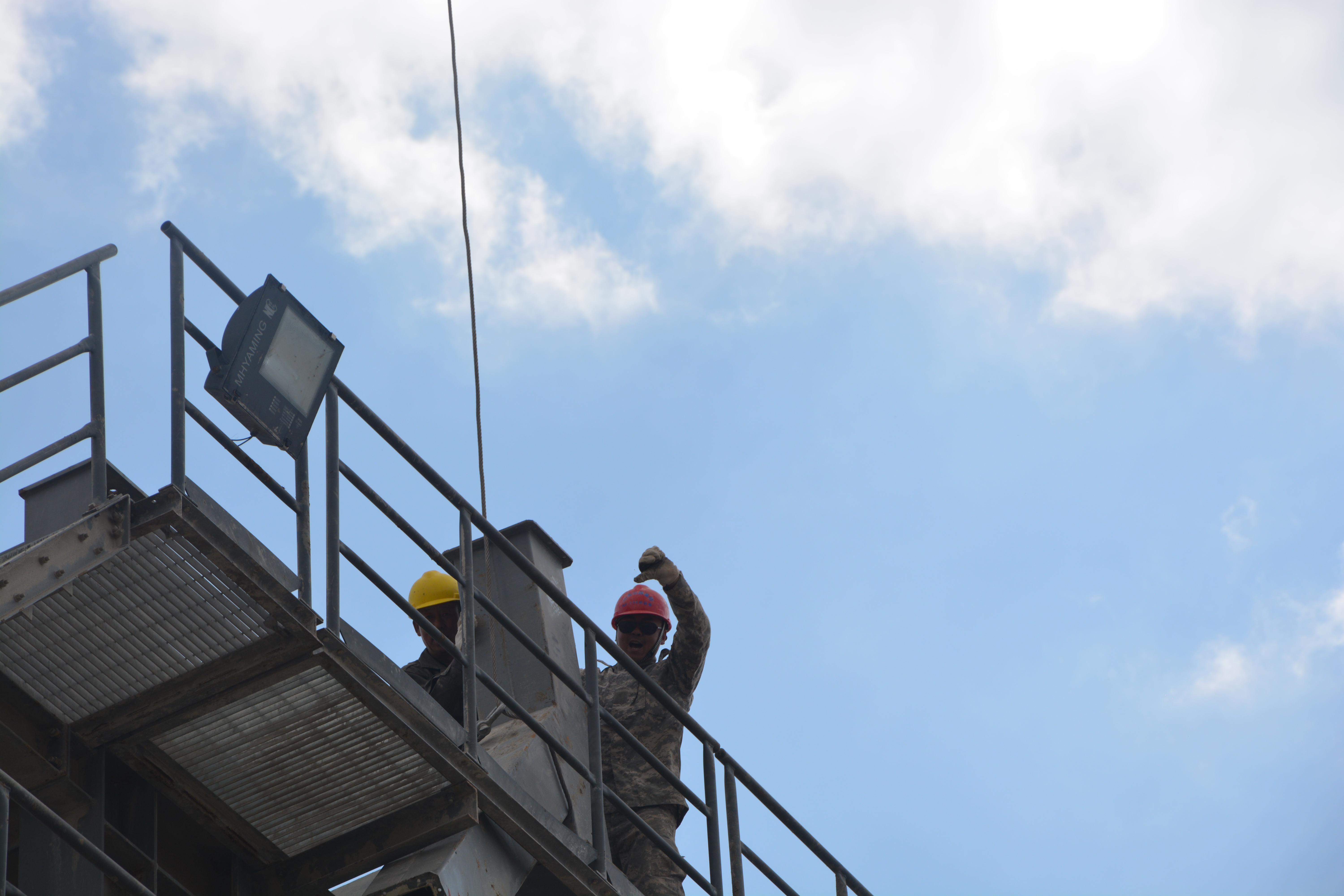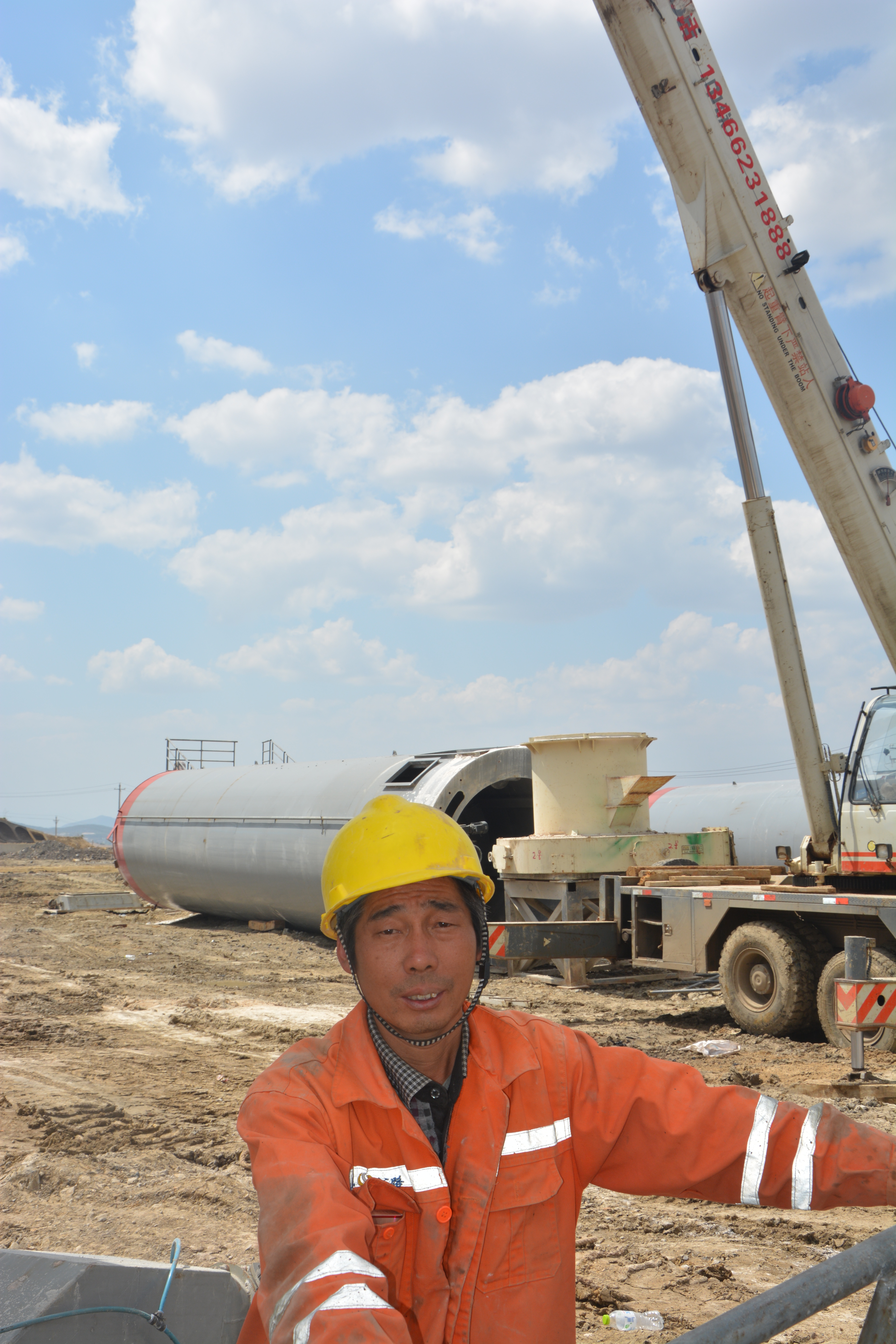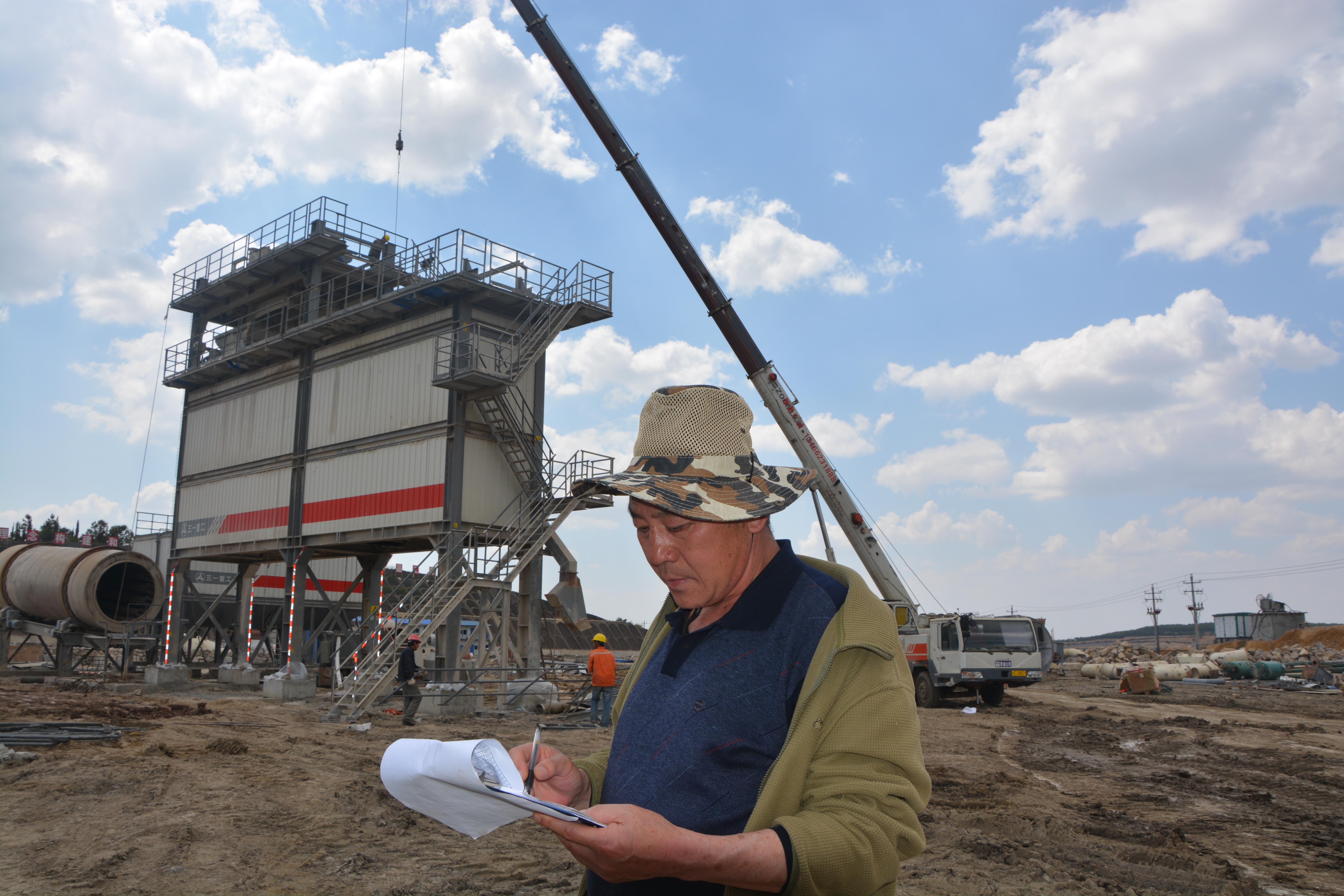 5月1日上午10點(diǎn)正在指揮瀝青拌合站主樓吊裝作業(yè)