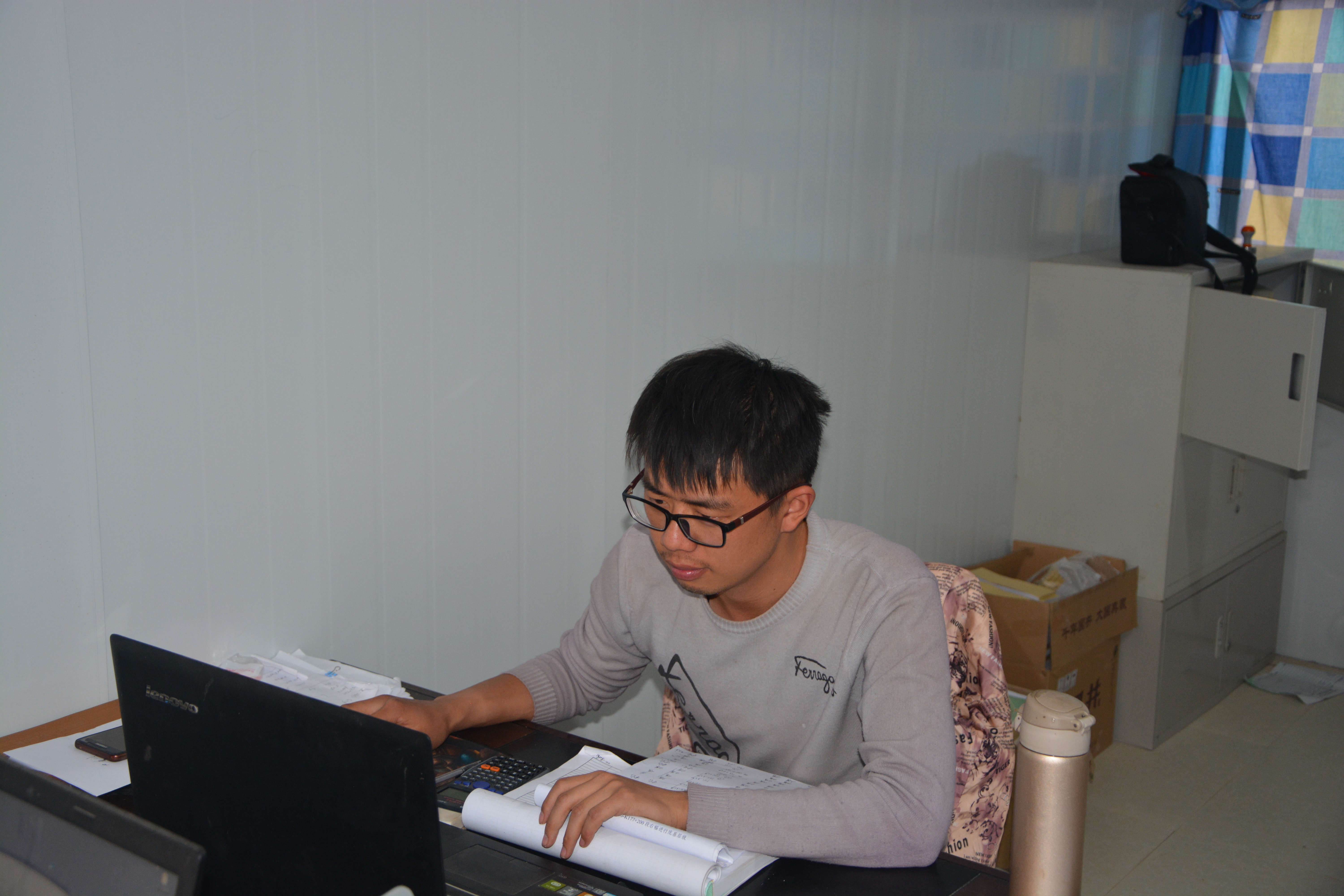5月1日,下午3:00沈洪濤正在統(tǒng)計(jì)每天的工程量