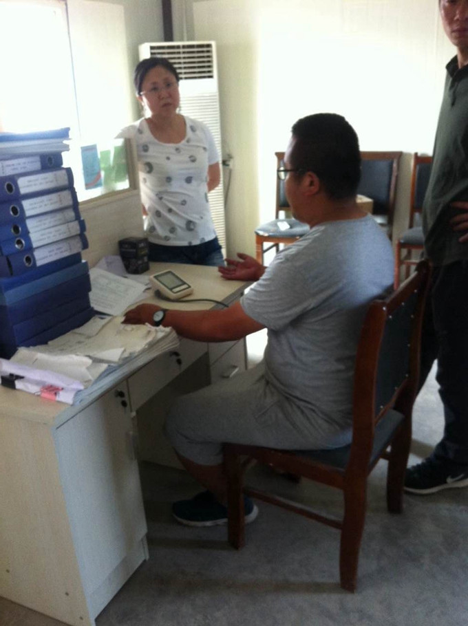 就在這樣一個炎熱的夏日,公司畢大夫與李明俊不顧酷暑一起來到工地,給大家送來了電子血壓儀,畢大夫親自給大家示范,并詳細(xì)的詢問工地職工的在職情況,唯恐漏下一個員工,為公路一線職工的身體健康添加了一道安全的防火線。