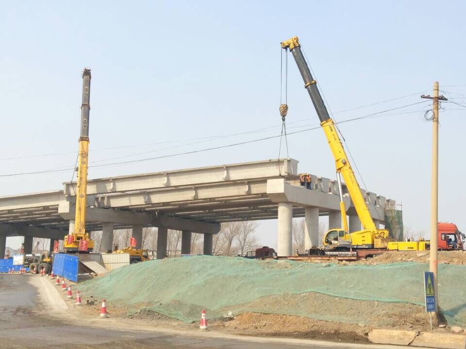 2臺(tái)汽車吊架設(shè)箱梁