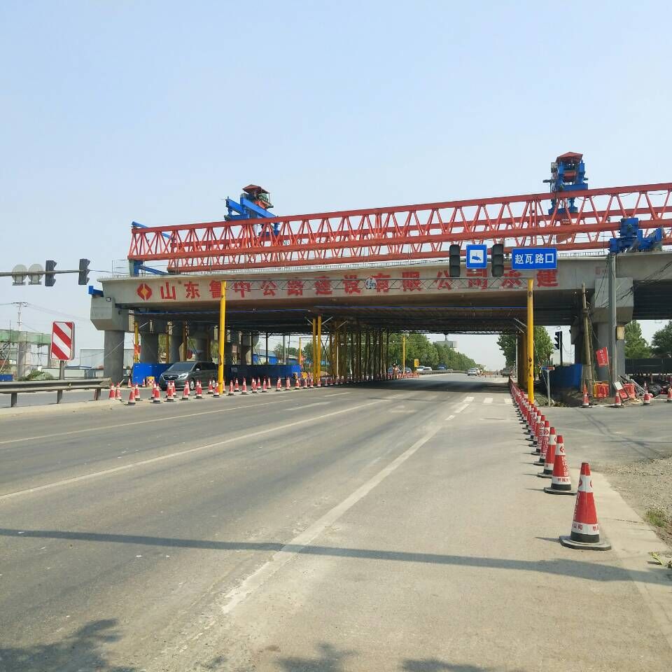 2017年5月23日,第20孔跨S294張博路架梁開始。為了這一天的到來(lái),項(xiàng)目部人員可謂是克服了種種困難。不知多少遍的與公路局、交警大隊(duì)、雙楊鎮(zhèn)政府等各上級(jí)部門協(xié)調(diào)、溝通,方案也不斷的進(jìn)行優(yōu)化。最終確定下來(lái),在趙瓦路口東西兩側(cè)新修兩條輔道,晚0點(diǎn)至凌晨5點(diǎn)對(duì)趙瓦路口進(jìn)行封閉施工,過(guò)往車輛從兩側(cè)輔道慢速通行。為了保證張博路車輛通行安全,在架梁前,項(xiàng)目部全體人員進(jìn)行了夜間道路封閉演練,演練按計(jì)劃順利完成。在歷經(jīng)了5個(gè)夜晚后,跨張博路箱梁架設(shè)完畢。