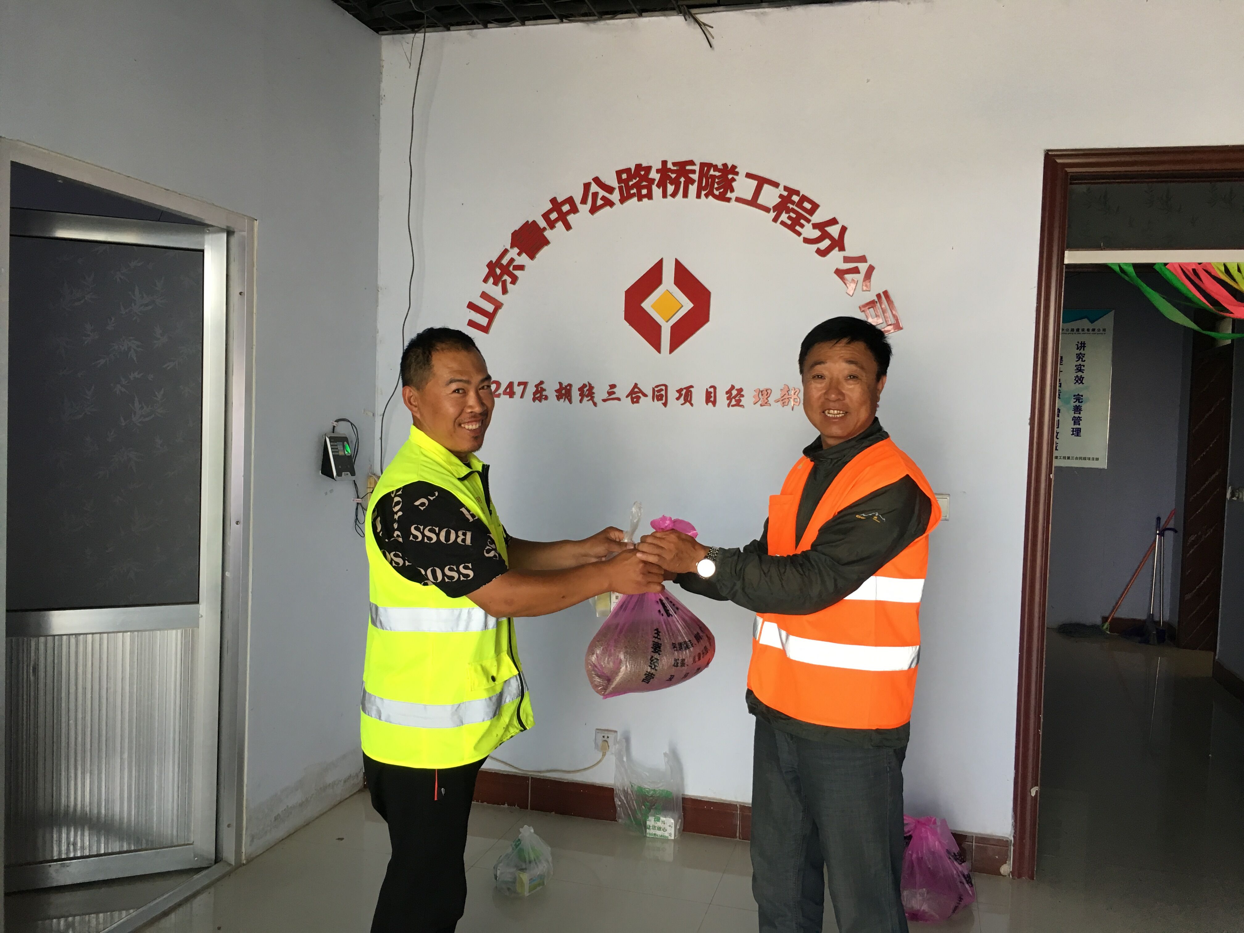 我們給施工在一線的同事們送去了預(yù)防中暑及感冒的藥品。當(dāng)他們看到我們大包小包的走向他們時,他們笑著迎上來,滿臉一個大寫“微笑”,我當(dāng)然知道,這些大寫的“微笑”不是沖著我們,而是我們手里的藥品!既然是這樣,那這些藥品豈能輕易被領(lǐng)走!我們首先提醒他們安全施工的重要性,特別注意高溫天氣下做好防中暑工作,保護(hù)好自己,他們聽得也比平時認(rèn)真。最后我們交出了藥品,看到他們開心的笑,我們心里也感覺清涼了許多。
