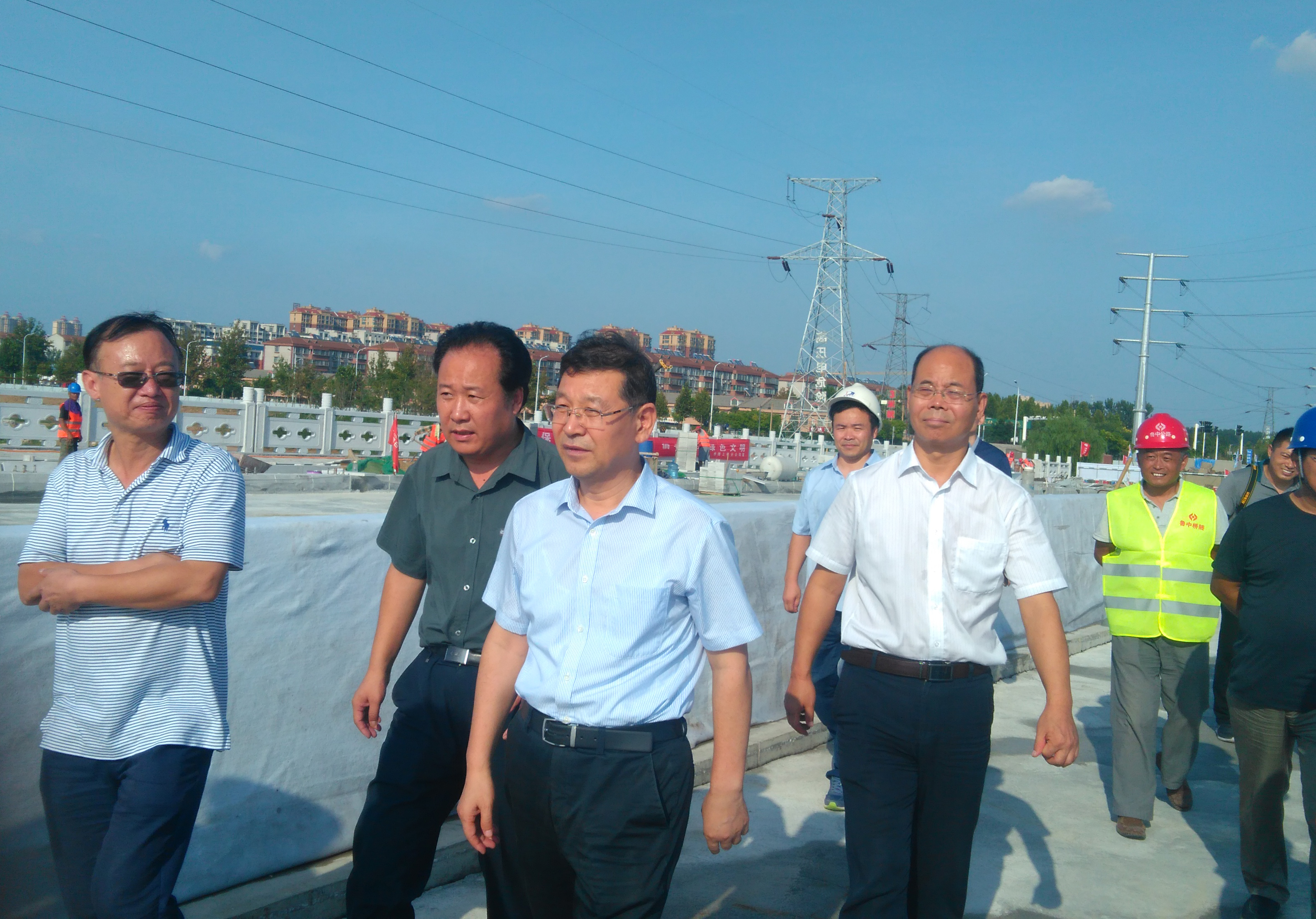 8月24日,在烈日的炙烤下,氣勢恢宏的花崗巖護欄和平整潔凈的混凝土橋面折射出耀眼的光芒。下午16:15時,淄博市委常委、市委書記周連華一行在淄博市住房和城鄉(xiāng)建設局等相關領導的陪同下,來到由我公司承建的馬南路孝婦河橋項目施工現(xiàn)場視察工作。