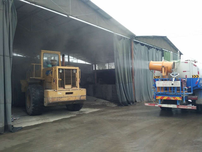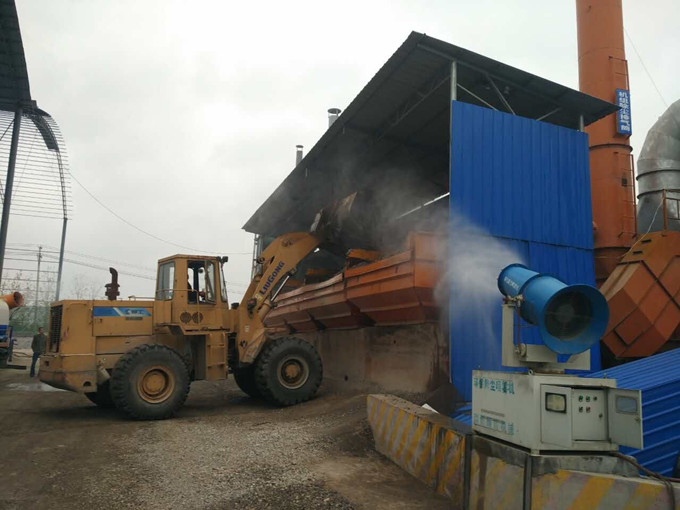 裝載機(jī)鏟廢料時(shí),防止環(huán)境污染,霧炮進(jìn)行噴淋