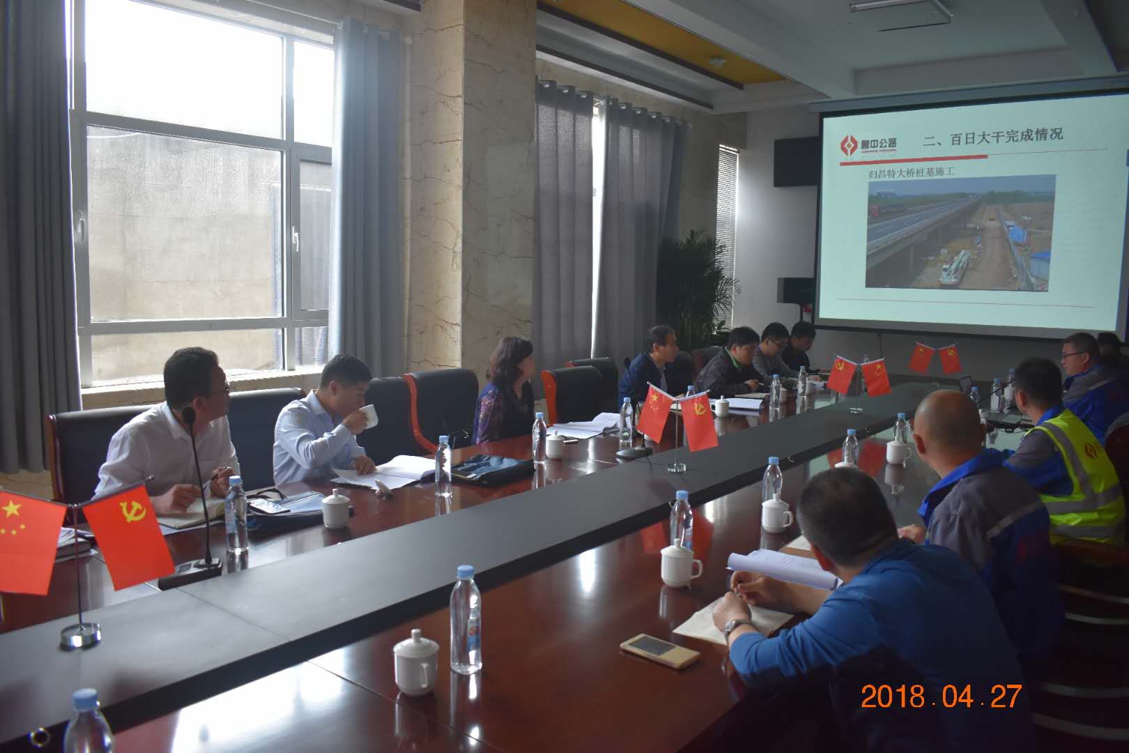 2018年4月27日,由項目辦總監(jiān)辦組織的檢查組來我G2京滬項目部進行4月份月底檢查。上午9點整,我部在項目部一樓會議室召開匯報會議,來自項目辦、總監(jiān)辦、駐地辦的檢查組人員以及G2京滬項目部項目經(jīng)理、項目總工、各科室負責人以及現(xiàn)場施工技術(shù)人員等共計40余人參加會議。