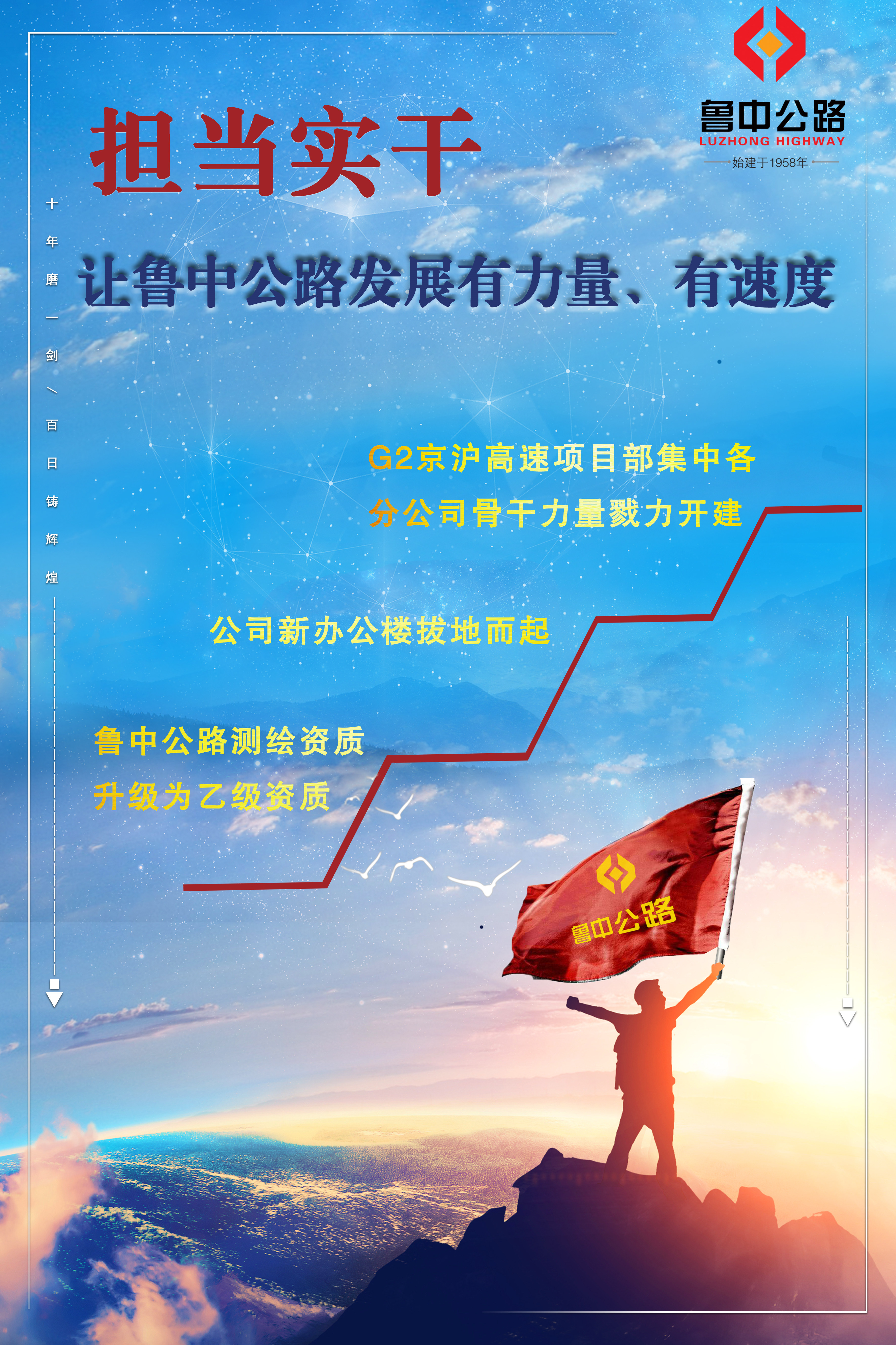 邁著矯健的步伐,我們迎來了祖國的傳統(tǒng)節(jié)日端午,同時(shí)也意味著本年度的工作任務(wù)已完成過半,這半年對魯中公路來說是蕩氣回腸的,測繪資質(zhì)升為乙級、公司新辦公樓拔地而起、G2京滬高速項(xiàng)目部集中各分公司的骨干力量戮力開建等等,都使每個(gè)魯中公路人倍感榮耀。“欲戴王冠,必承其重”、“家之昌盛,吾輩有責(zé)”,公司要發(fā)展,員工就要更有力量、有信仰、有文化,使魯中公路在繼承中發(fā)展,在發(fā)展中繼承,千秋萬代,筑通天下。