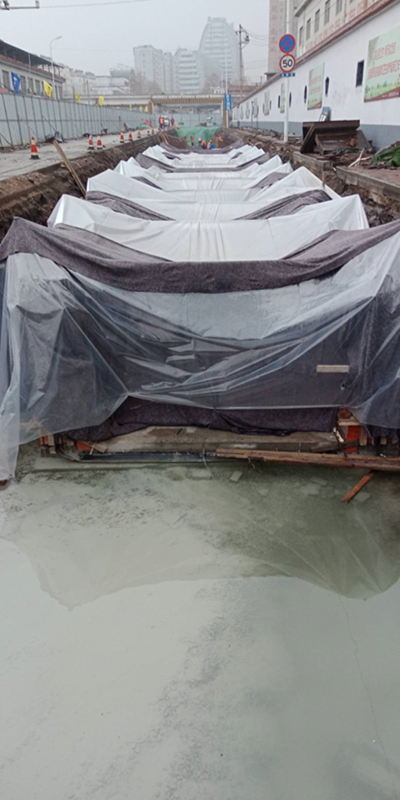 在合理的搶工期、抓進度、確保施工質(zhì)量的同時,瓏山路工程對現(xiàn)場安全管理更是絲毫不敢松懈。在做好冬季“五防”安全措施等規(guī)定動作的基礎(chǔ)上,針對現(xiàn)場作業(yè)環(huán)境惡劣的情況,安全工作處處都是重點。保溫加熱設(shè)施附近放置消防設(shè)置,現(xiàn)場物料規(guī)范放置,每天早晨施工前都會安排專職安全員進行安全隱患排查,施工隊長每日班前會進行安全狀況交底,力保冬季施工安全有序進行。