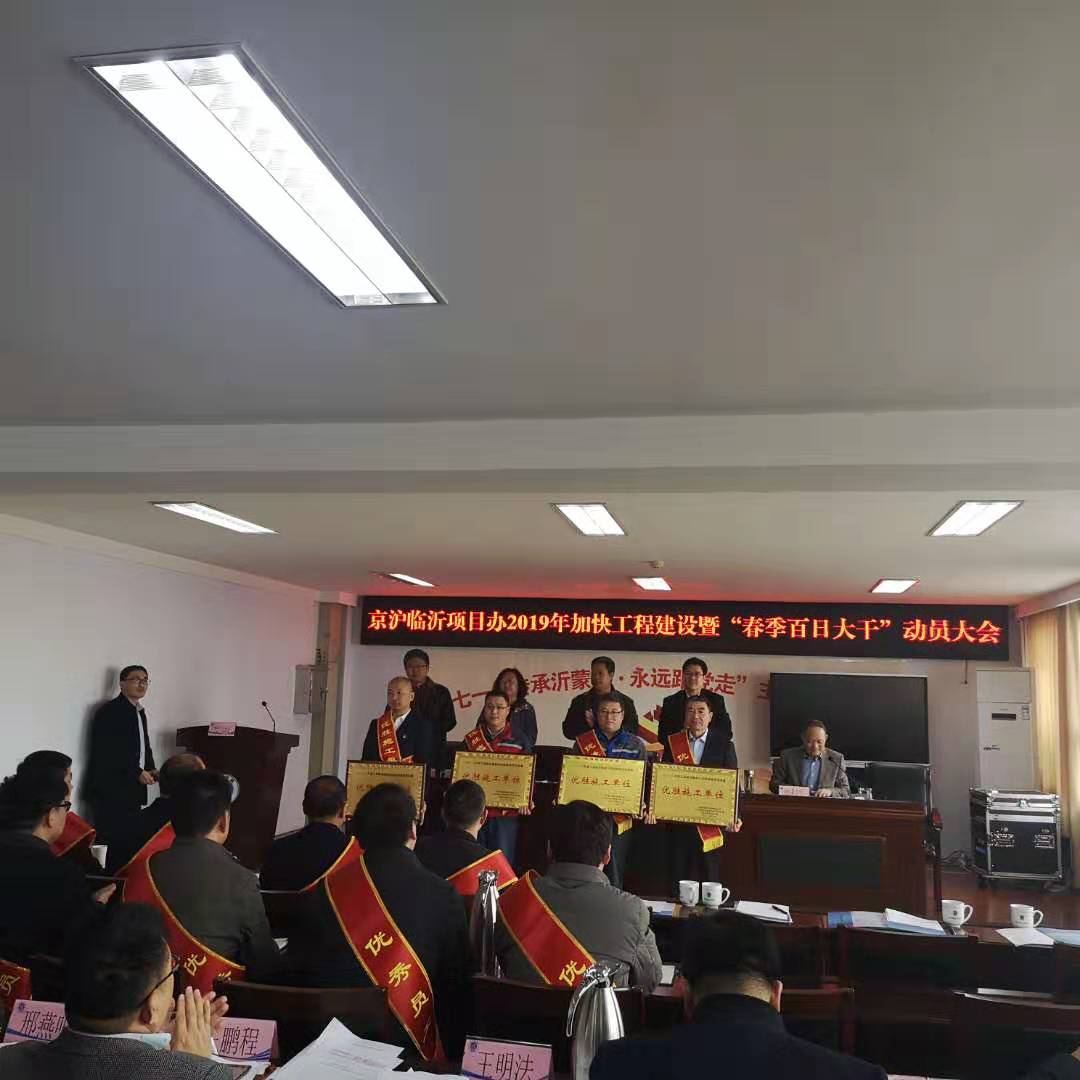2019年3月9日,京滬臨沂項(xiàng)目辦舉行2019年加快工程建設(shè)暨“春季百日大干”動(dòng)員大會(huì)上,表彰了2018年涌現(xiàn)出的先進(jìn)單位和先進(jìn)個(gè)人,山東魯中公路建設(shè)有限公司作為京滬高速公路建設(shè)的排頭兵,一直兢兢業(yè)業(yè),恪盡職守,嚴(yán)格按照公司部署,執(zhí)行公司決定,堅(jiān)定不移、不打折扣地落實(shí),發(fā)揚(yáng)魯中人吃苦耐勞,團(tuán)結(jié)協(xié)作的精神,樹立敢闖敢拼,廢寢忘食的先進(jìn)典型,以點(diǎn)帶面,共同進(jìn)步。
