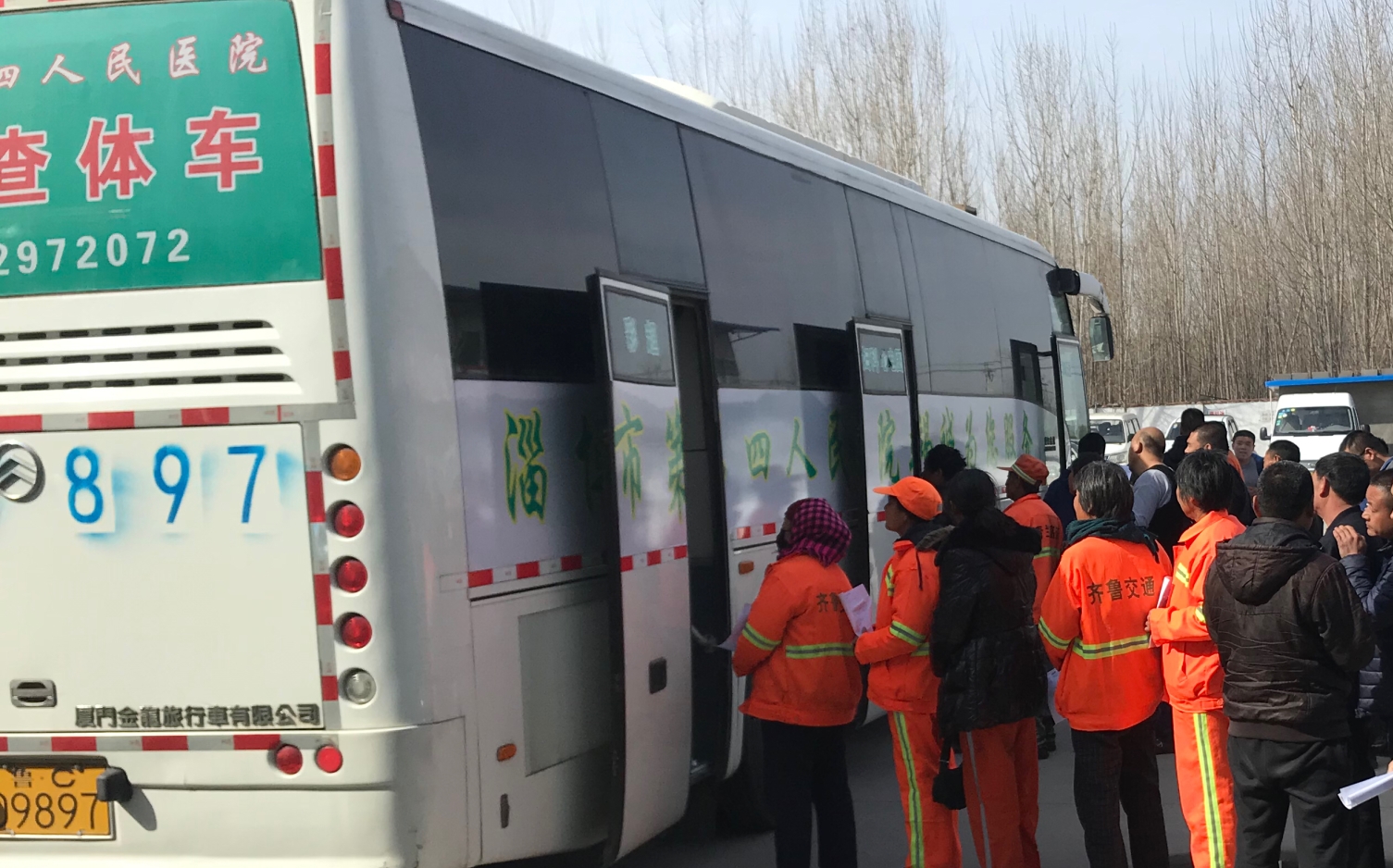 早上8點左右,淄博市第四人民醫(yī)院的體檢車停在了沂源瀝青拌合站院內(nèi),我們一行人員排隊有序的進行各項身體檢查。本次的檢查包括血常規(guī)、心電圖、胸透、彩超等,可以全面細致的了解我們的身體狀況。