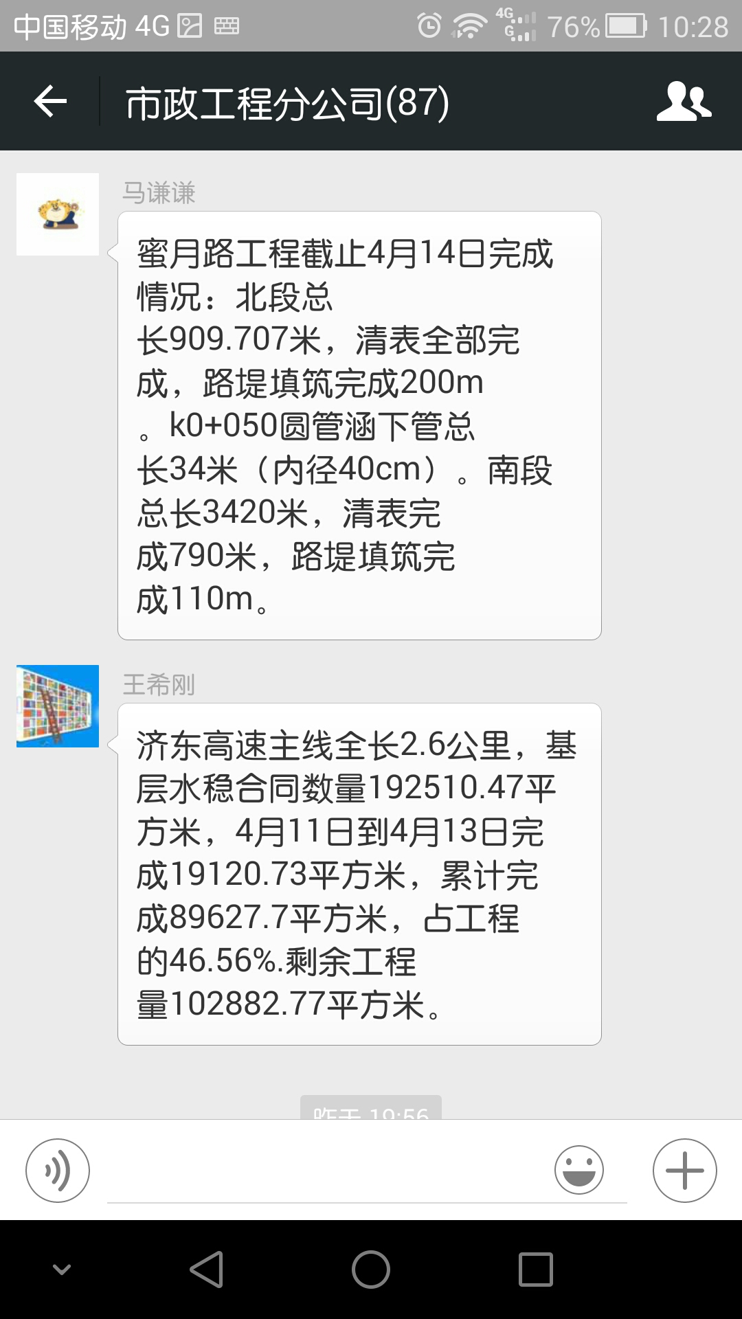 市政工程分公司于近期通過(guò)微信這一網(wǎng)絡(luò)社交app搭建了我們自己的工程信息實(shí)時(shí)分享平臺(tái)。成立分公司后,在分公司領(lǐng)導(dǎo)授意下,原淄川拌合站微信群擴(kuò)大為市政工程分公司信息群,隨著各個(gè)工地工程的陸續(xù)展開(kāi),各種工程信息、進(jìn)展動(dòng)態(tài)源源不斷的推送至這一平臺(tái),打開(kāi)界面,總能看到領(lǐng)導(dǎo)們伸出大拇指的點(diǎn)贊和諸如“注意安全,抓好質(zhì)量”之類的耳提面命,我想這就為奮戰(zhàn)在一線的同仁們送去了一股暖流,也有同事們發(fā)來(lái)的施工照片、視頻、技術(shù)資料、實(shí)時(shí)數(shù)據(jù),這都為日后的發(fā)展積累了經(jīng)驗(yàn)、儲(chǔ)備了技術(shù)。另一方面,微信平臺(tái)也是我們轉(zhuǎn)變思想、改革宣傳方法的一項(xiàng)舉措,我們主張有工作就要有宣傳,宣傳材料作為工作成果上傳,讓大家了解自身崗位、了解自身光輝。通過(guò)這種形式,大大提升了員工參與工作的積極性,工作效率明顯提高。
