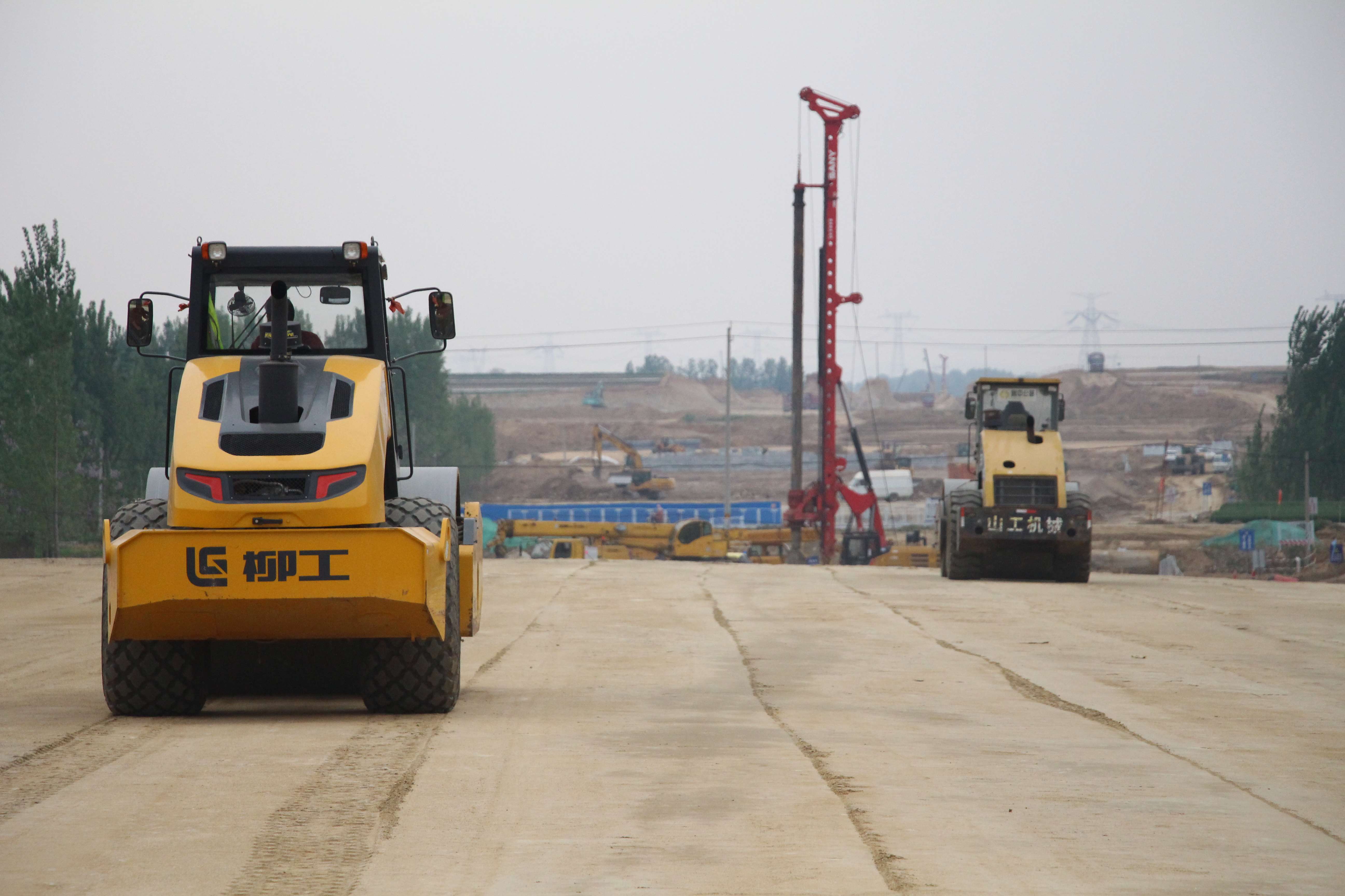 通過這一系列的有效措施,各線工作逐步步入正軌。施工便道上,運(yùn)輸土石方的近百輛運(yùn)輸車絡(luò)繹不絕,來回穿梭、各類大型施工機(jī)械設(shè)備,齊聲轟鳴,路基填筑碾壓、樁基鉆孔灌注、臺背回填壓實(shí)、系梁澆筑混凝土......各項(xiàng)工序有條不紊,快速推進(jìn)。