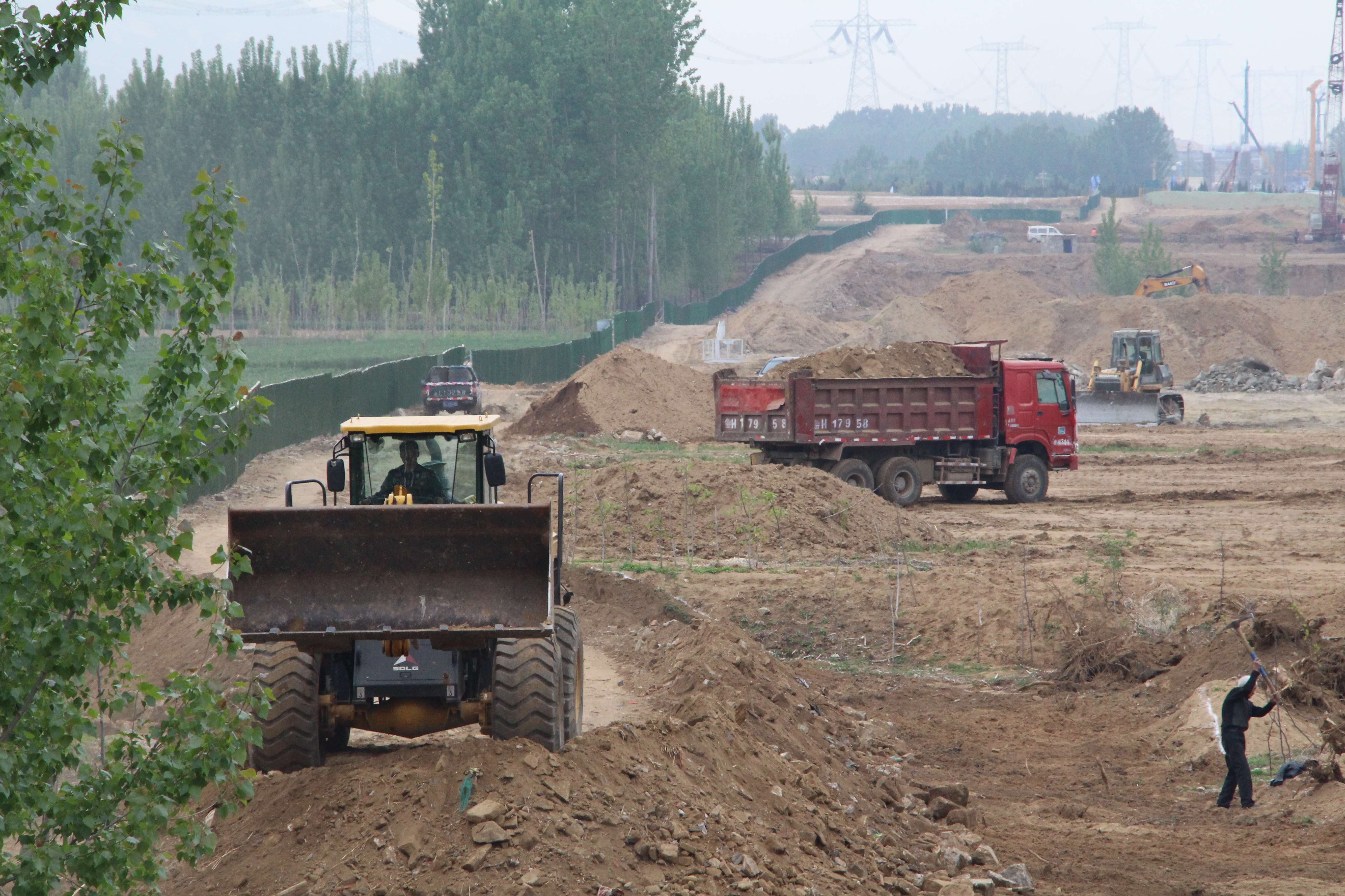 高鐵西側(cè)k57+500附近,現(xiàn)場負(fù)責(zé)人楊新剛正和施工隊(duì)一道進(jìn)行便道施工。