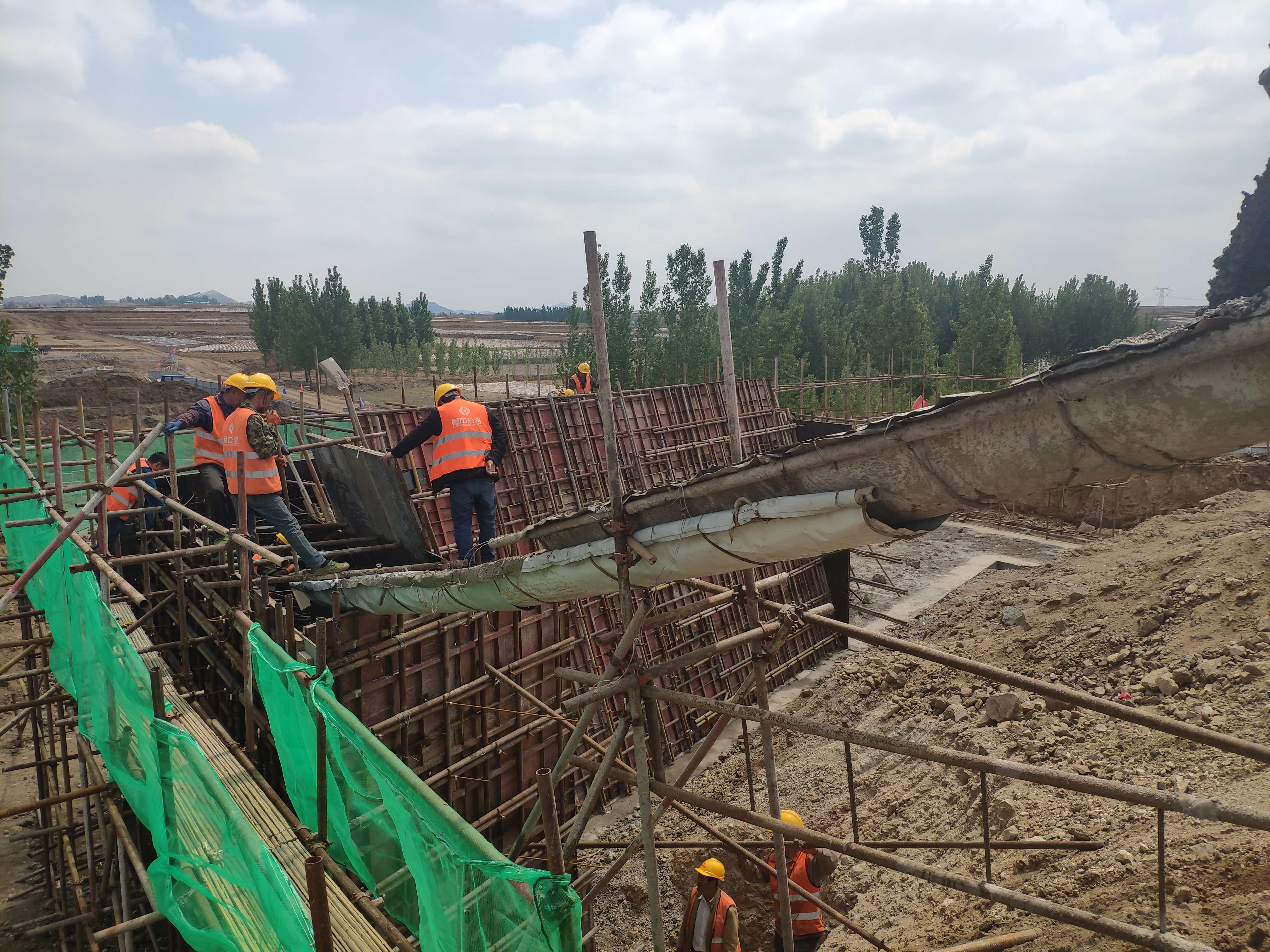 K48+447.3分離立交,橋涵負(fù)責(zé)人張靖山正在現(xiàn)場指揮施工。