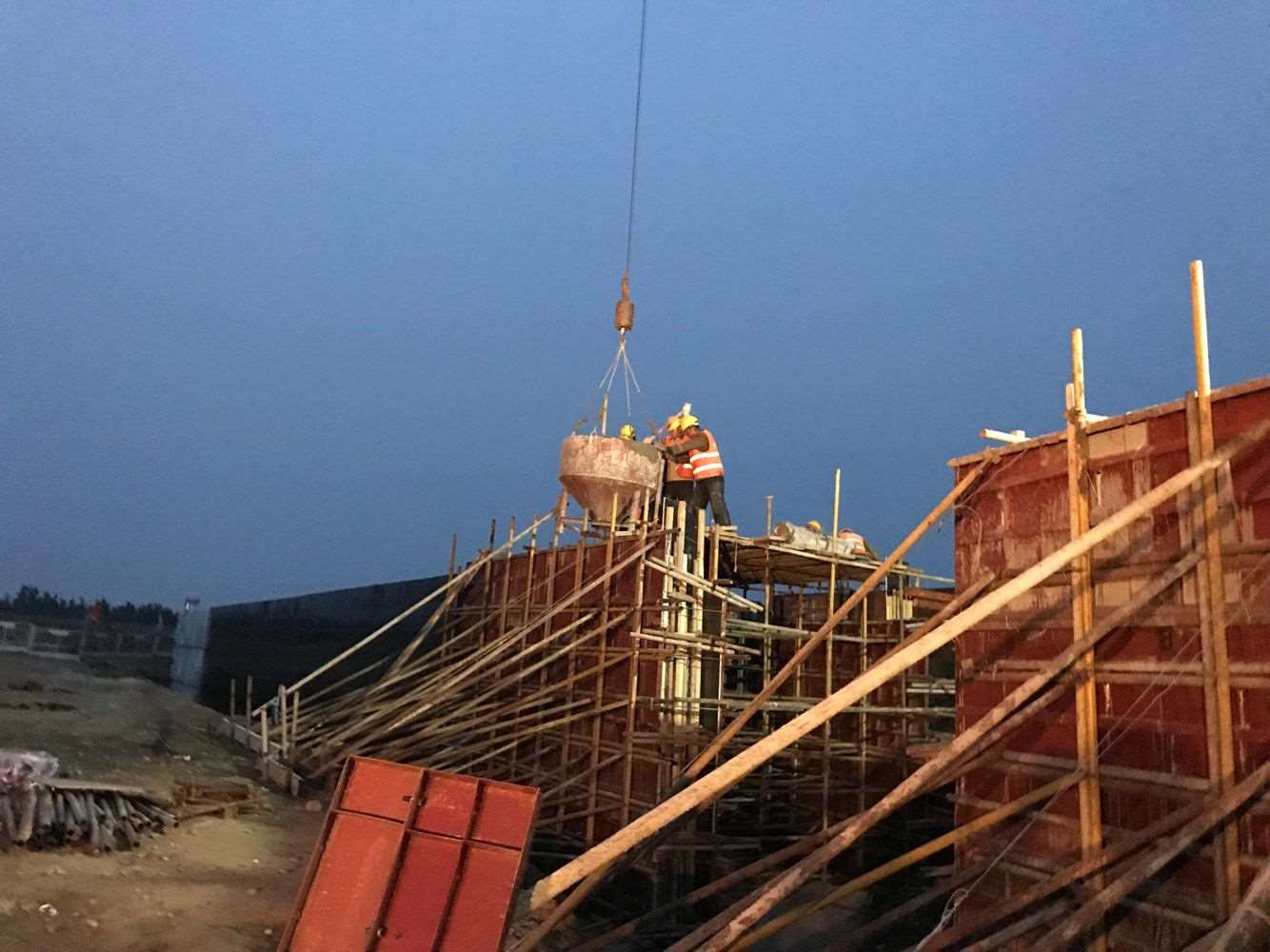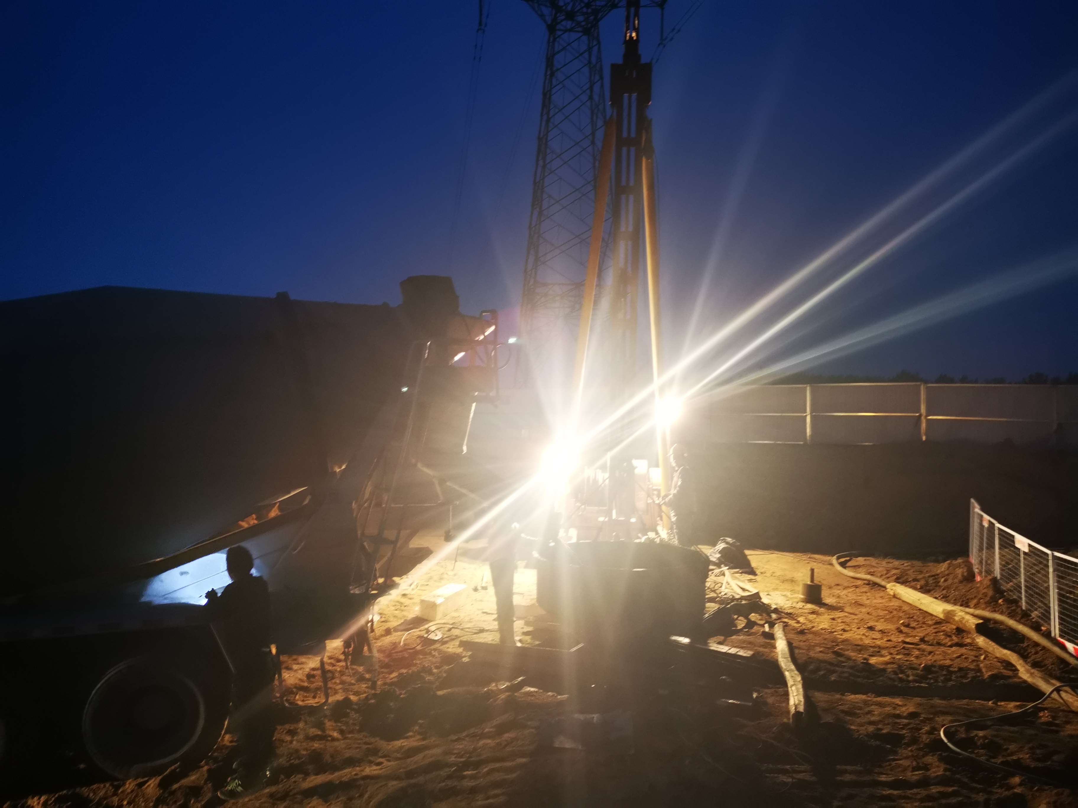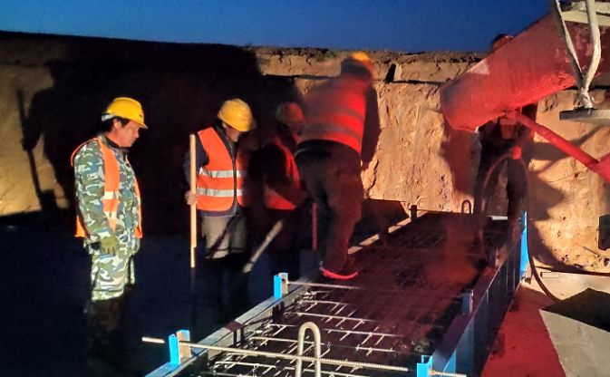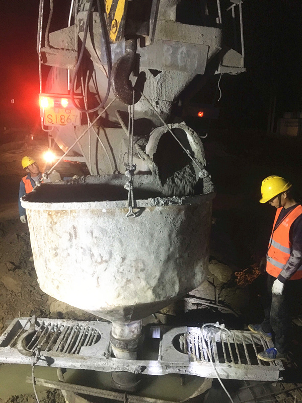 由于今晚還有樁基灌注任務(wù),范廣金、趙祥坤、劉亞坤等幾名現(xiàn)場管人員匆匆拔了幾口飯便又返回了現(xiàn)場,隨著一車車混凝土運(yùn)到施工現(xiàn)場,伴著一根根樁基、系梁、一片片涵身順利澆灌完畢,時(shí)間也已來到了晚上22:00。