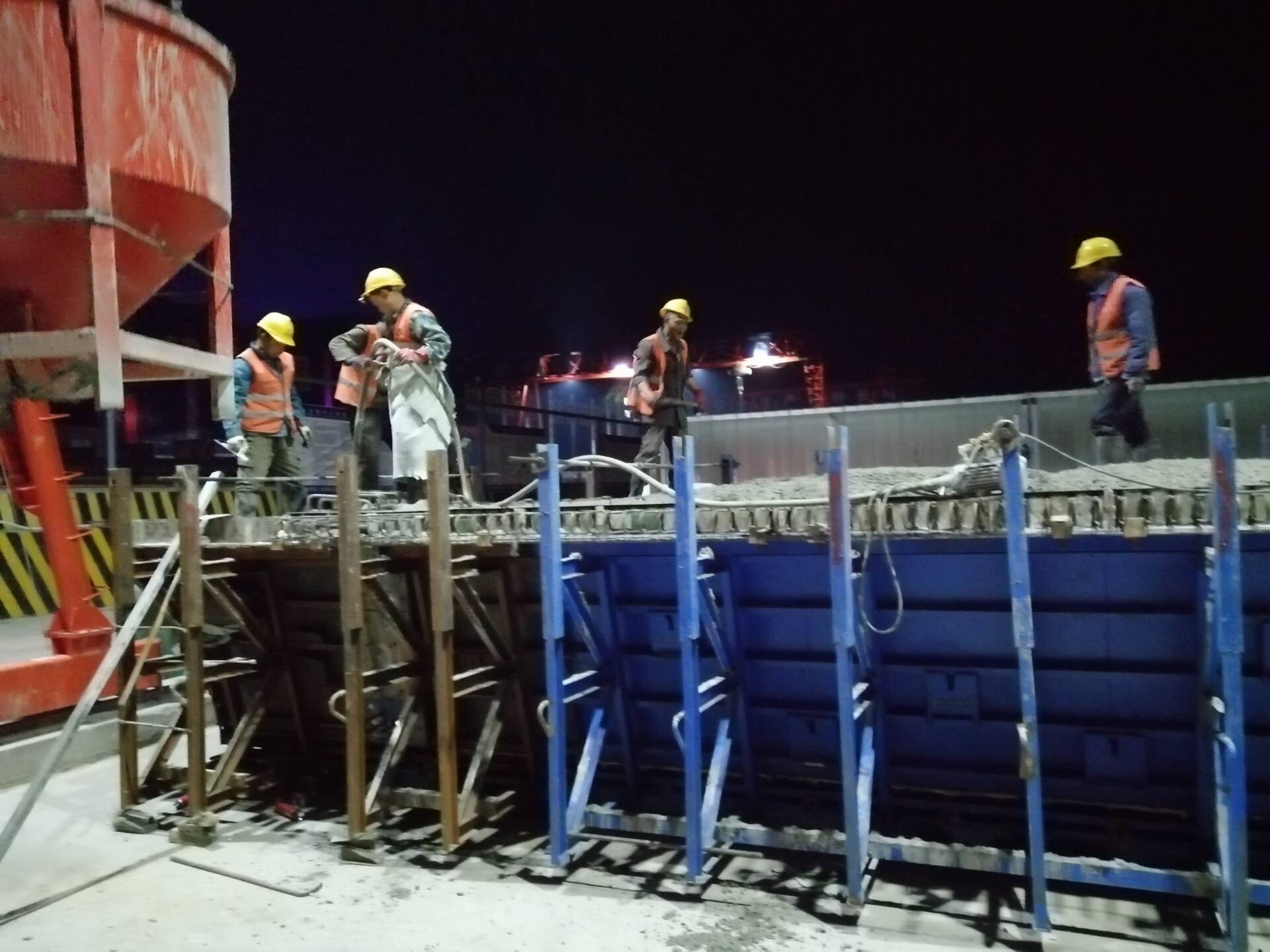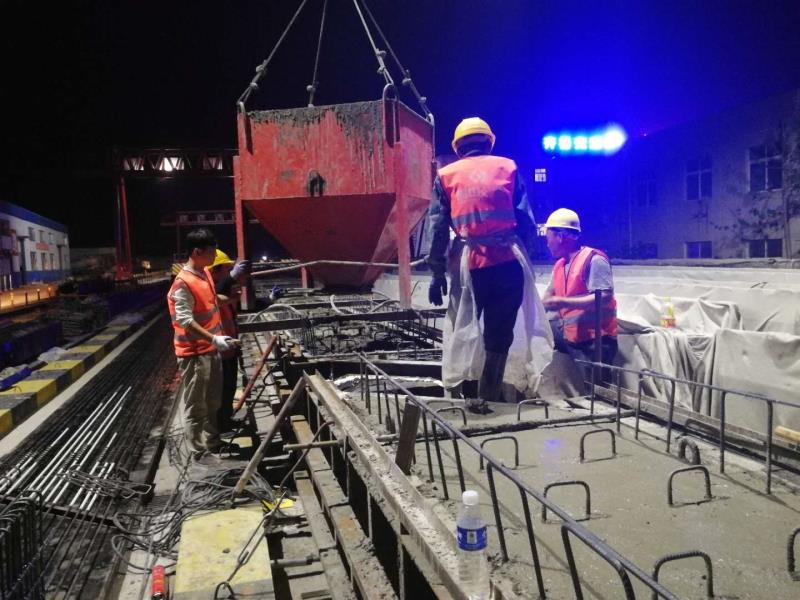 為了確保“春季百日大干”計(jì)劃產(chǎn)值如期、超額完成,項(xiàng)目部合理安排工序,進(jìn)行交叉作業(yè),充分利用時(shí)間,根據(jù)工序安排,夜間施工一般進(jìn)行的是鋼筋綁扎和混凝土澆筑。在忙碌一天后,夜間的施工隊(duì)現(xiàn)場管理人員要求極高,無論從質(zhì)量方面還是安全方面,都要付出更多的精力。