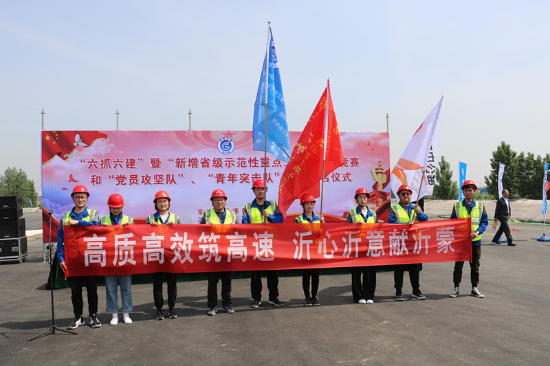 為落實(shí)全省“擔(dān)當(dāng)作為、狠抓落實(shí)”動(dòng)員大會(huì)精神,推動(dòng)“當(dāng)好主力軍、聚力新動(dòng)能、建功新時(shí)代”勞動(dòng)競(jìng)賽暨新增省級(jí)示范性重點(diǎn)工程勞動(dòng)競(jìng)賽深入開(kāi)展,激勵(lì)廣大黨員和團(tuán)員青年在工作中充分發(fā)揮生力軍和突擊隊(duì)作用,加快推進(jìn)工程建設(shè),5月7日,京滬臨沂項(xiàng)目辦在六標(biāo)棗園互通施工現(xiàn)場(chǎng)舉行 “六抓六建"暨新增省級(jí)示范性重點(diǎn)工程勞動(dòng)競(jìng)賽和“黨員攻堅(jiān)隊(duì)”“青年突擊隊(duì)”授旗簽名活動(dòng)。