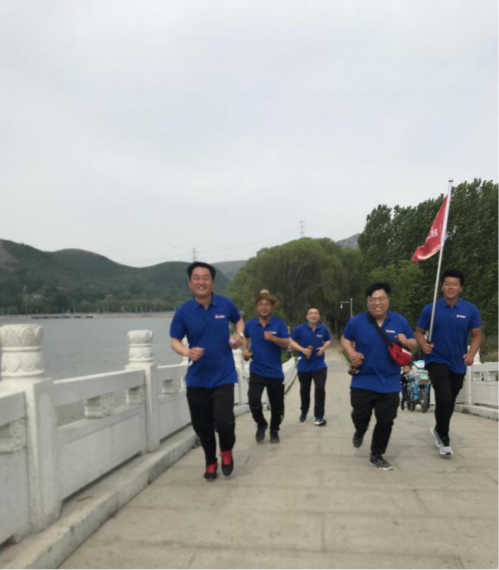 隨著項目經(jīng)理的一聲令下,大家向前方奮勇跑去,不多時,年輕氣盛的小伙子們大步奔跑遙遙領(lǐng)先,年長的前輩們則在隊伍后面快步走著,前后呼應(yīng),倒也相映成趣。