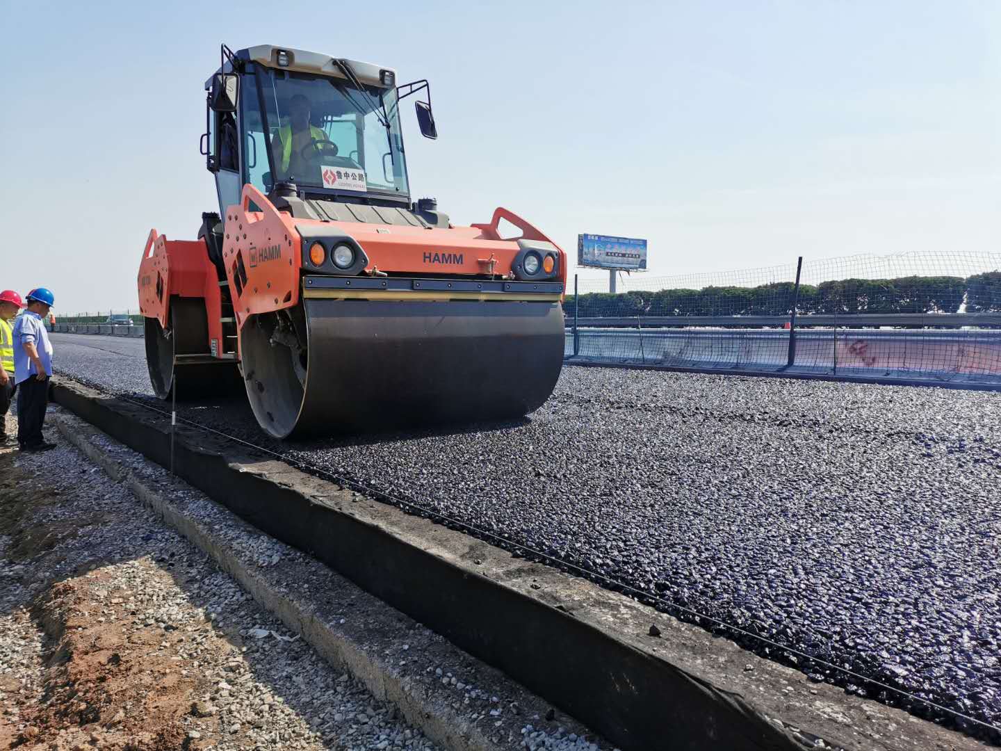 在之后的沭河大橋攤鋪之行,大家經(jīng)過合作磨合,頓感輕松一些,但對(duì)于艱巨的任務(wù),大家不敢掉以輕心,拿出之前干路基的猛干精神,奮然在束河大橋上堅(jiān)守了25小時(shí),順利拿下沭河大橋之戰(zhàn)。頂著驕陽(yáng),大家也不帶帽子,長(zhǎng)期的暴曬,膚色都黑黑的,習(xí)以為?;ハ嗄么舜蛉ぃ轮g不經(jīng)意間的玩笑話,緊張的工作帶來的疲憊瞬間消失地?zé)o影無蹤。為了迅速拿下這段工程,大家一致決定,連續(xù)作業(yè),一天完成,不耽誤下一次的機(jī)械調(diào)轉(zhuǎn)準(zhǔn)備。油層機(jī)械隊(duì)伍極力配合,在道路寬度發(fā)生變化時(shí),迅速組裝好攤鋪機(jī),不影響今天的進(jìn)度計(jì)劃。