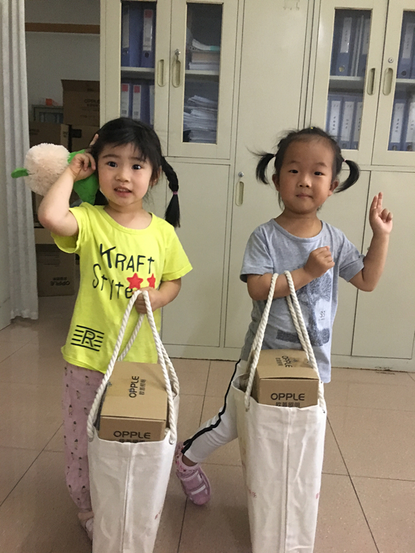 今年公司打破按年齡段為孩子們選購禮物的慣例,按家庭中孩子的個數(shù)來準備禮物,一是讓孩子們學(xué)會分享,二是從實用角度來選定禮物。今年的六一禮物有九檔觸控選擇的歐普護眼臺燈、有人體感應(yīng)的電子鬧鐘、有活力與情懷并重的紅雙喜羽毛球拍,有印著卡通形象可以方便孩子們拎的亞麻手提袋,還有公司人力資源部為每個孩子手寫的六一賀卡。拿到禮物孩子們開心的笑顏是對公司最幸福的回饋。