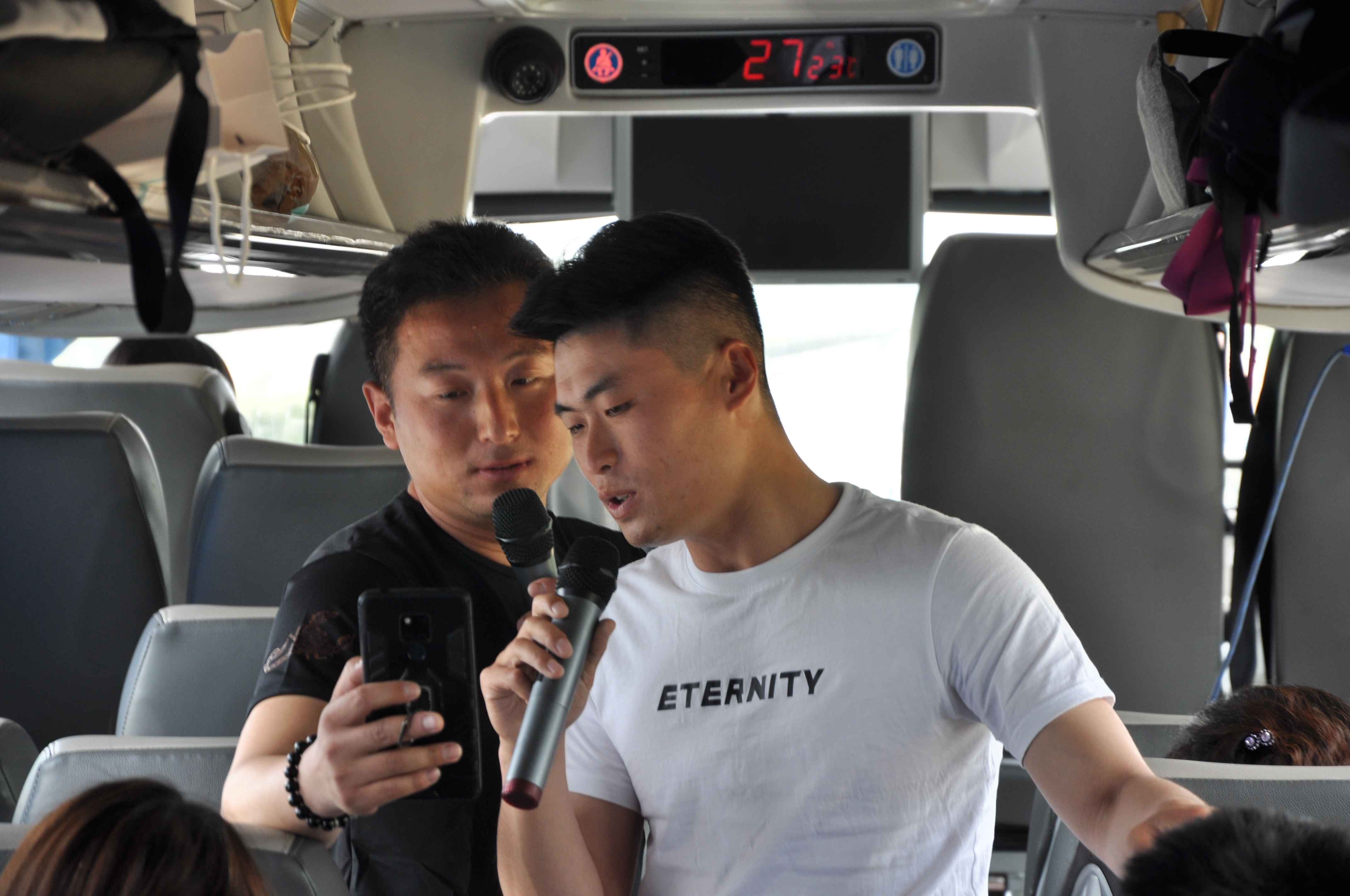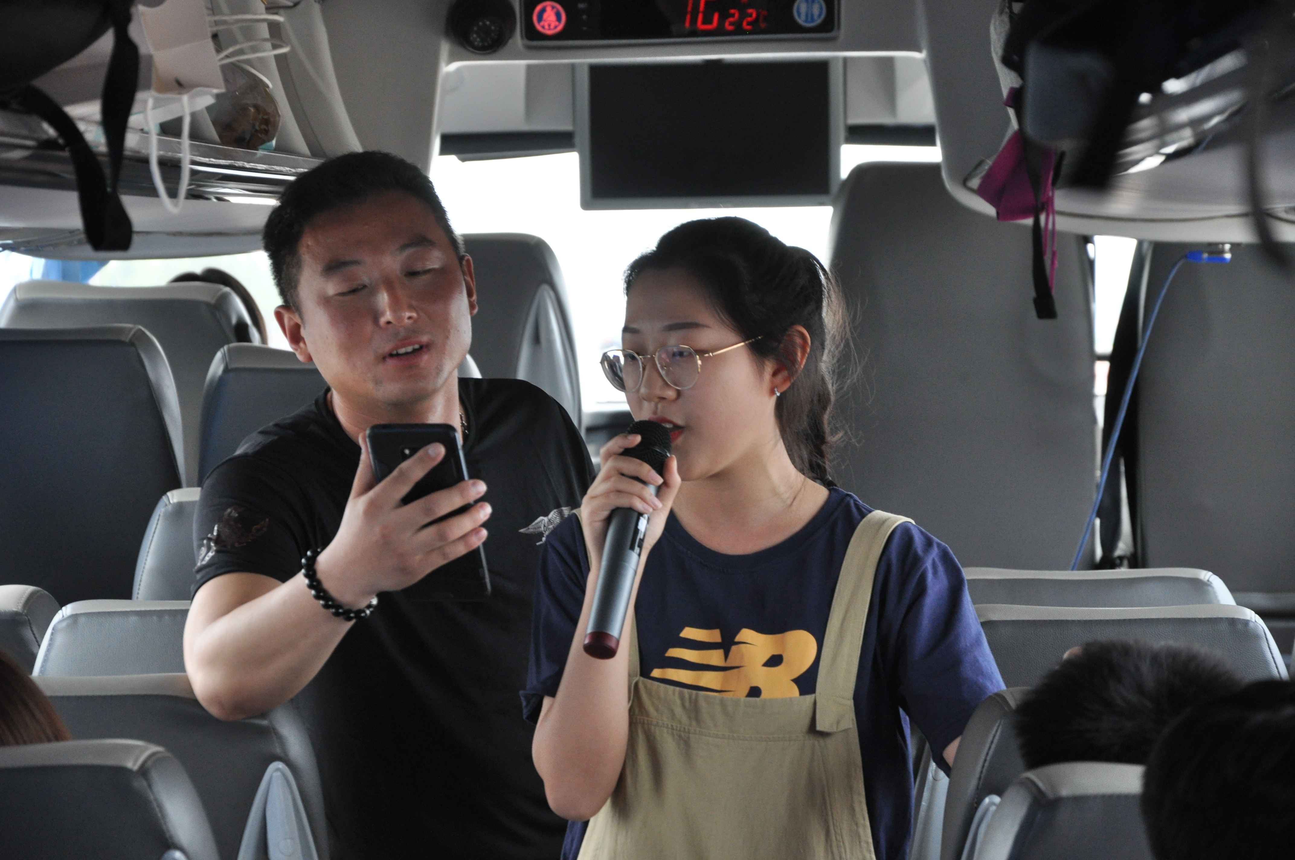 結(jié)束了G2項(xiàng)目的參觀及職業(yè)體驗(yàn),大巴車再次起程,驅(qū)車前往臺(tái)兒莊古城。一路上大家的話題開(kāi)始多了起來(lái),大家彼此之間多了“路”與“橋”做連接。隨著大巴車緩緩駛?cè)胗刑煜碌谝磺f之稱的臺(tái)兒莊,發(fā)生在這片土地上的故事和淵源吸引了一行人的興致。用歌聲寄情懷,大巴車也再次開(kāi)啟了K歌模式,先由市兒童活動(dòng)中心幼兒園工會(huì)吳主席帶領(lǐng)大家唱響《我和我的祖國(guó)》、《歌唱祖國(guó)》,開(kāi)始了紅歌聯(lián)唱,緊接著每個(gè)人一展歌喉,從經(jīng)典流行到童謠歌曲,整個(gè)旅途都熱鬧起來(lái)。