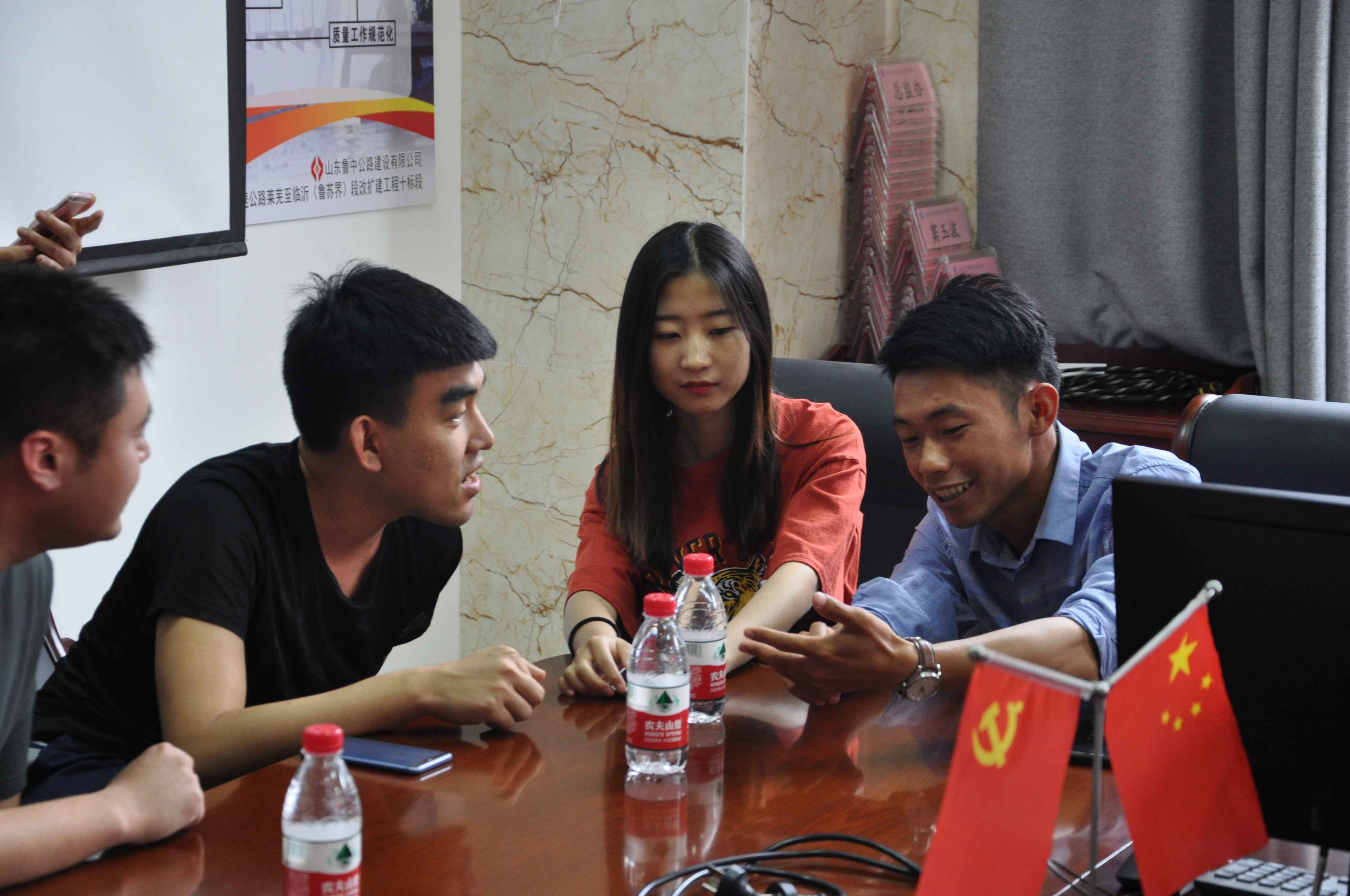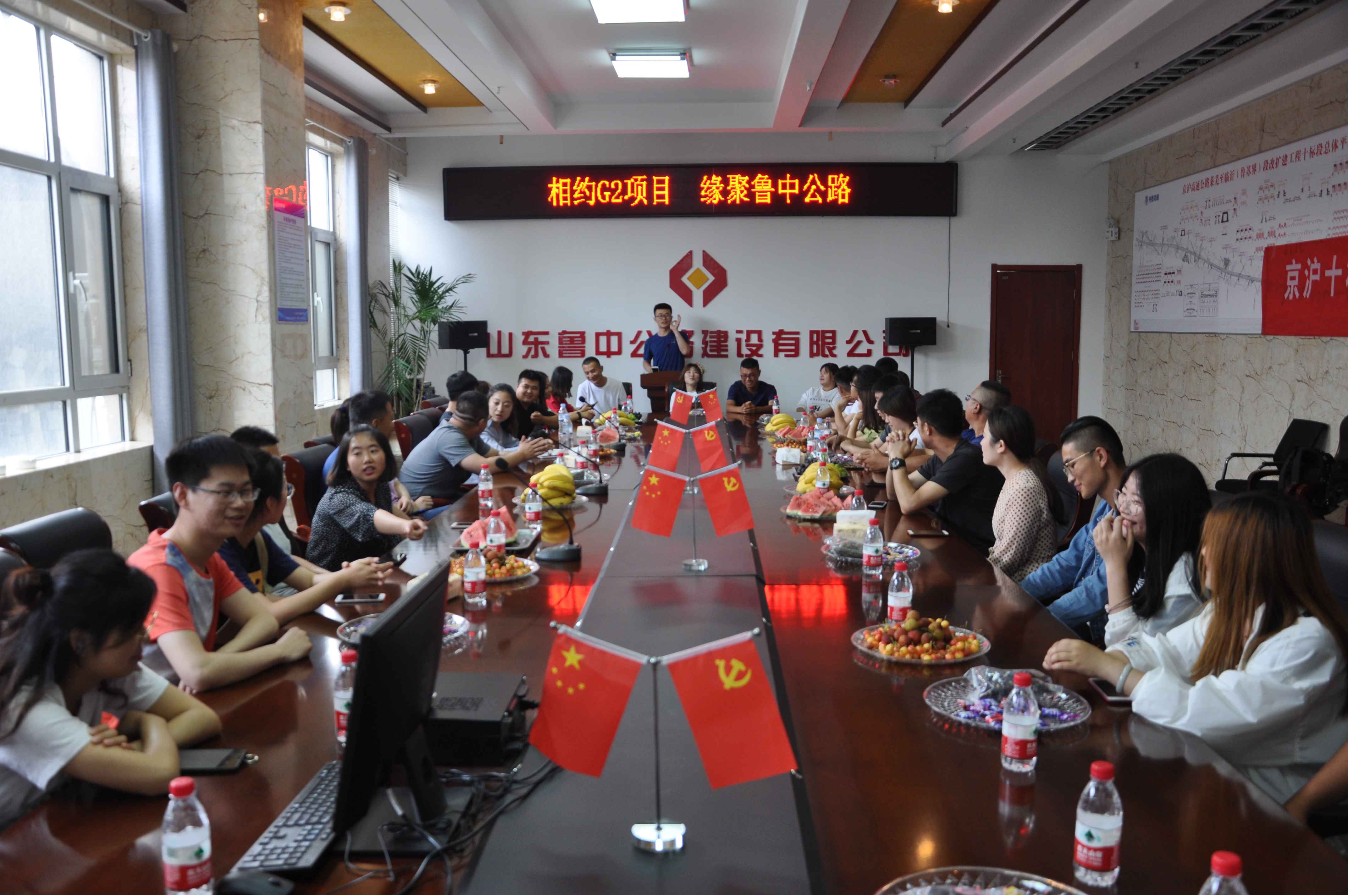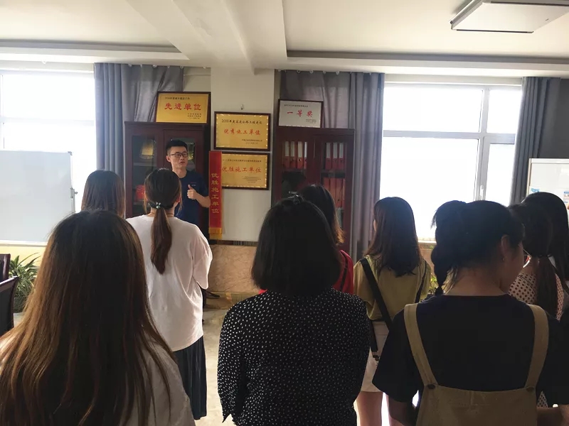 為了一解姑娘們舟車勞頓,小伙子們?cè)缭绲臏?zhǔn)備了果盤、零食,大家在G2京滬高速項(xiàng)目部的會(huì)議室歡聚一堂,辦公室主任魏玉波向市兒童活動(dòng)中心的老師們做了項(xiàng)目介紹及幽默風(fēng)趣的歡迎儀式,使年輕人們記住彼此的姓名,消除了拘束。