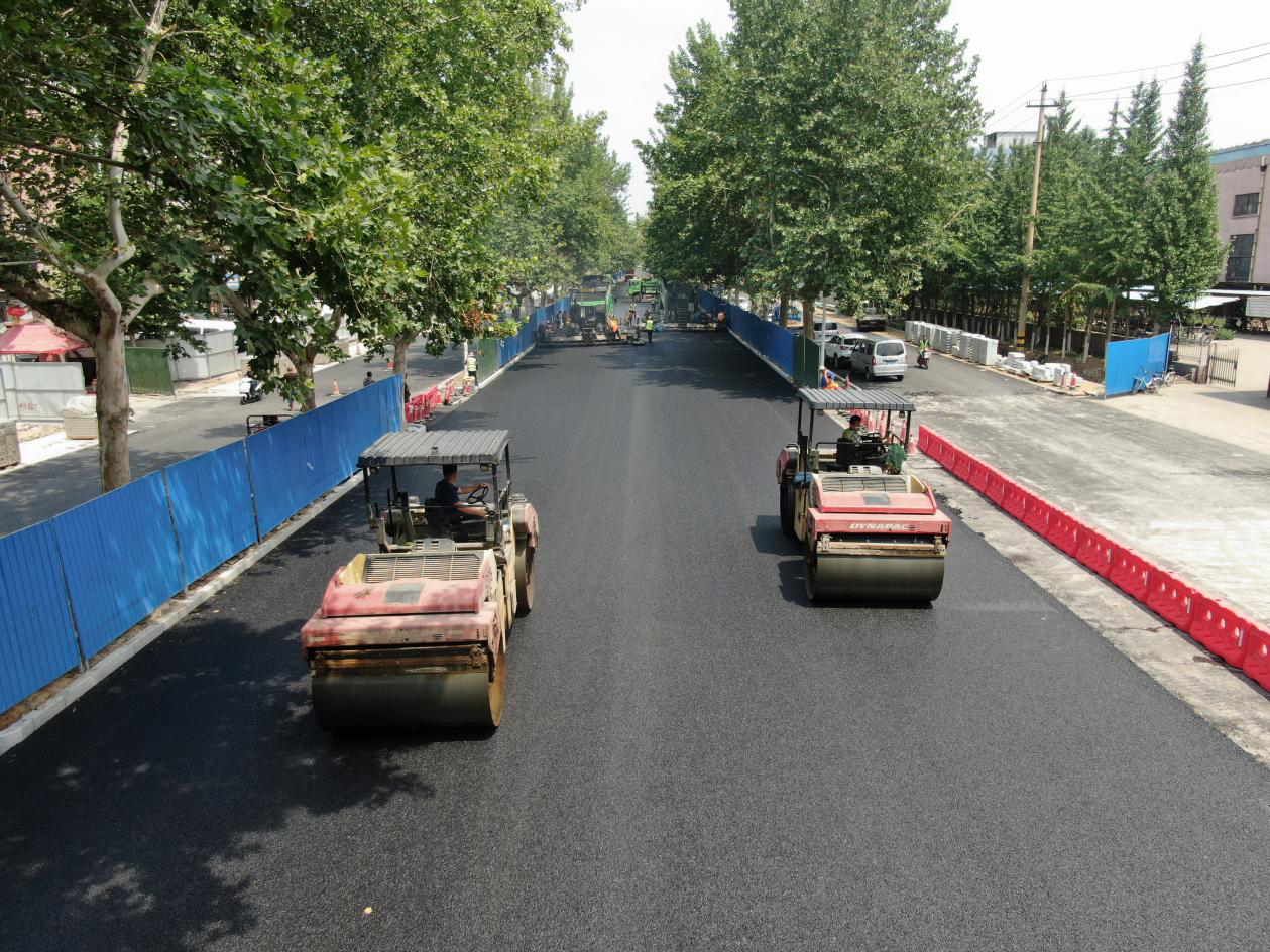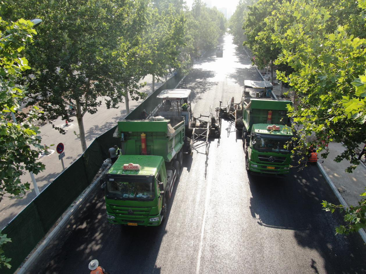 2019年6月23日,共青團路開工的第三個月,主路瀝青上面層順利完成攤鋪。日升月落三個月,不僅共青團路的梧桐枝繁葉茂,共青團路也已經(jīng)改頭換面。