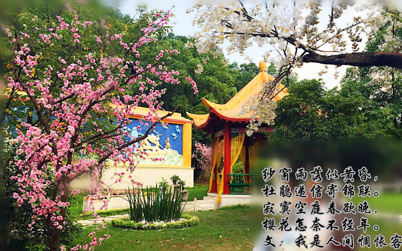 有道是,紗窗雨落似黃昏,杜鵑遞信寄錦聯(lián)。寂寞空庭春欲晚,櫻花怎奈不經(jīng)年。