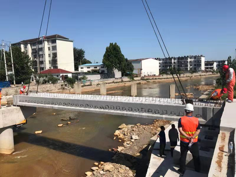 博山區(qū)北山路孝婦河橋第一片預(yù)應(yīng)力空心板梁成功架設(shè)