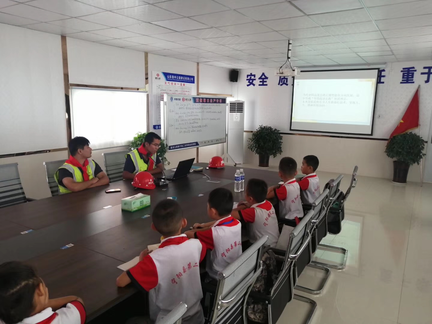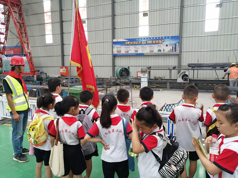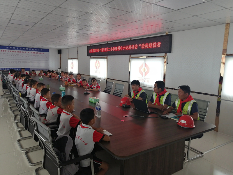 2019年8月24日,寧陽縣第二小學的30名少先隊員在輔導員老師的帶領(lǐng)下,帶著這些疑問來到了山東魯中公路建設(shè)有限公司新寧項目華豐預制梁場,開展了“我與祖國共成長,爭做小小追夢人”紅領(lǐng)巾尋訪“最美建設(shè)者”的活動。
