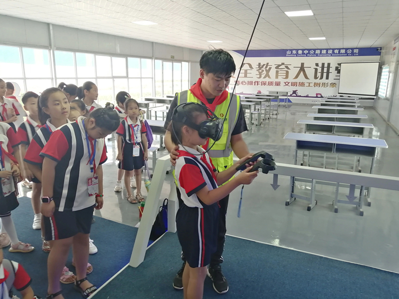 安全是工程建設(shè)的重中之重,少先隊員們特地參觀了“VR安全體驗館”。體驗館中以三維動態(tài)的形式全真模擬出工地施工真實場景和險情,使孩子們通過身臨其境的體驗,切實體驗到了事故發(fā)生時的整個過程及發(fā)生瞬間的驚險,為孩子們上了一堂生動安全課。