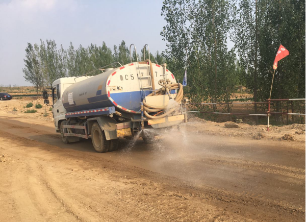 便道灑水抑塵,渣土車覆蓋運輸,場站出入口設(shè)置車輛沖洗臺,裸露土覆蓋
