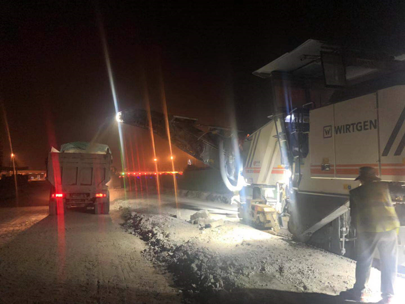 晚上11:00主線(xiàn)收費(fèi)站銑刨基層施工