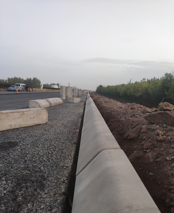 我部共有路緣石安裝65km、急流槽1128道、邊溝及排水溝3.7km及防護(hù)工程漿砌片石5700余方,目前正在施工右幅路緣石安裝、急流槽澆筑、拱形骨架砌筑、邊溝施工,在主體工程施工的同時(shí),附屬工程也按照工序交錯(cuò)施工,多個(gè)工作面同步展開(kāi),緊張繁忙的工作氣息撲面而來(lái)。