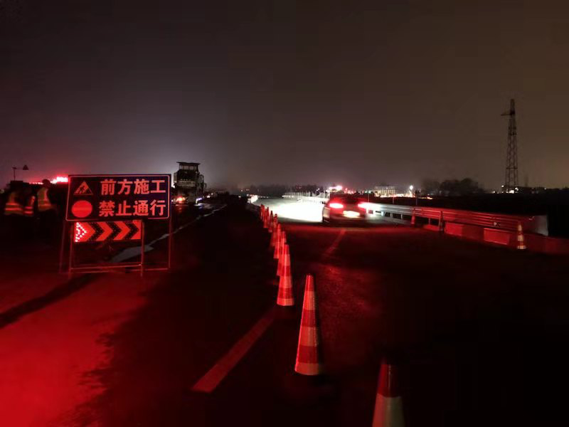 由于該項(xiàng)目為改擴(kuò)建項(xiàng)目,根據(jù)業(yè)主要求,需保證在施工期間雙向保通,因此需要隨進(jìn)行部分導(dǎo)改及關(guān)鍵節(jié)點(diǎn)的全線(xiàn)導(dǎo)改,為確保交通導(dǎo)改的順利完成及杜絕安全事故的發(fā)生,G2京滬項(xiàng)目共投入一支導(dǎo)改隊(duì)伍、一支安全保暢巡邏隊(duì)和一支值班看守隊(duì)伍,投入人員30人,服務(wù)車(chē)輛若干,對(duì)高速重要路口及導(dǎo)改段落進(jìn)行巡視值班看守工作。作為全線(xiàn)第一家實(shí)現(xiàn)主線(xiàn)全面導(dǎo)改的施工單位,G2京滬項(xiàng)目嚴(yán)格落實(shí)“邊通車(chē)、邊施工”的原則,巡邏隊(duì)伍每日對(duì)高速進(jìn)行安全巡視,確保京滬項(xiàng)目杜絕一切安全事故。
