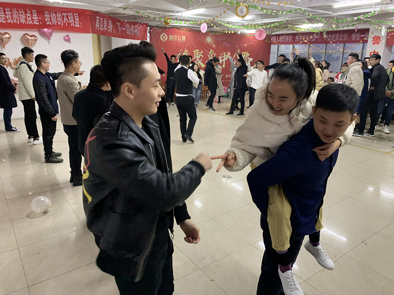 本屆聯(lián)誼會(huì)公司早早著手,早早行動(dòng),游戲項(xiàng)目都是千揀萬選選出來的,雖已料到現(xiàn)場(chǎng)氣氛肯定激情飛揚(yáng),可真到實(shí)踐之時(shí),還是讓大家樂的東倒西歪。“支援前線”、“角色互換”等環(huán)節(jié)充分展現(xiàn)了當(dāng)代年輕人高效的執(zhí)行力及無限的創(chuàng)造力。支援前線活動(dòng)將會(huì)場(chǎng)氣氛推向高潮,當(dāng)主持人一聲令下要小組女生一只鞋子、一只襪子時(shí),女生們立即行動(dòng),毫不退縮;當(dāng)主持人要小組男生一件襯衣時(shí),穿襯衣的小伙伴還在發(fā)懵,但襯衣已瞬間被剝走了。角色互換無疑成為整場(chǎng)活動(dòng)的小太陽,人人腦洞大開,報(bào)紙、汽球、假發(fā)等小物件派上大用場(chǎng),十分鐘的化妝時(shí)間后,展現(xiàn)出來的風(fēng)采絕不亞于維密走秀,無論是氣場(chǎng)還是喝彩聲,讓整個(gè)現(xiàn)場(chǎng)都狂熱起來。