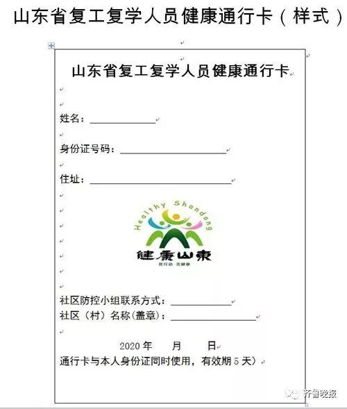 山東將啟用復(fù)工復(fù)學(xué)人員健康通行卡
