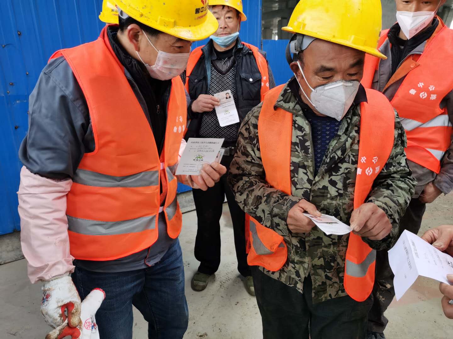 人員進(jìn)場(chǎng)按要求檢查健康證、測(cè)體溫、檢查生活區(qū)消毒情