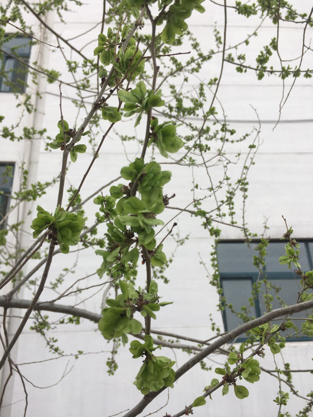 突然發(fā)現(xiàn)公司院里竟然有幾棵榆樹,從發(fā)現(xiàn)就開始念念不忘,每天都要看一看什么時(shí)候能夠長大,終于薄薄的圓圓的、嫩嫩的青青的榆錢一嘟嚕一嘟嚕地垂在枝條上,一串串地排列,十分像一串串銅錢,一簇簇,一團(tuán)團(tuán),你挨著我,我擠著你,看得人眼花。