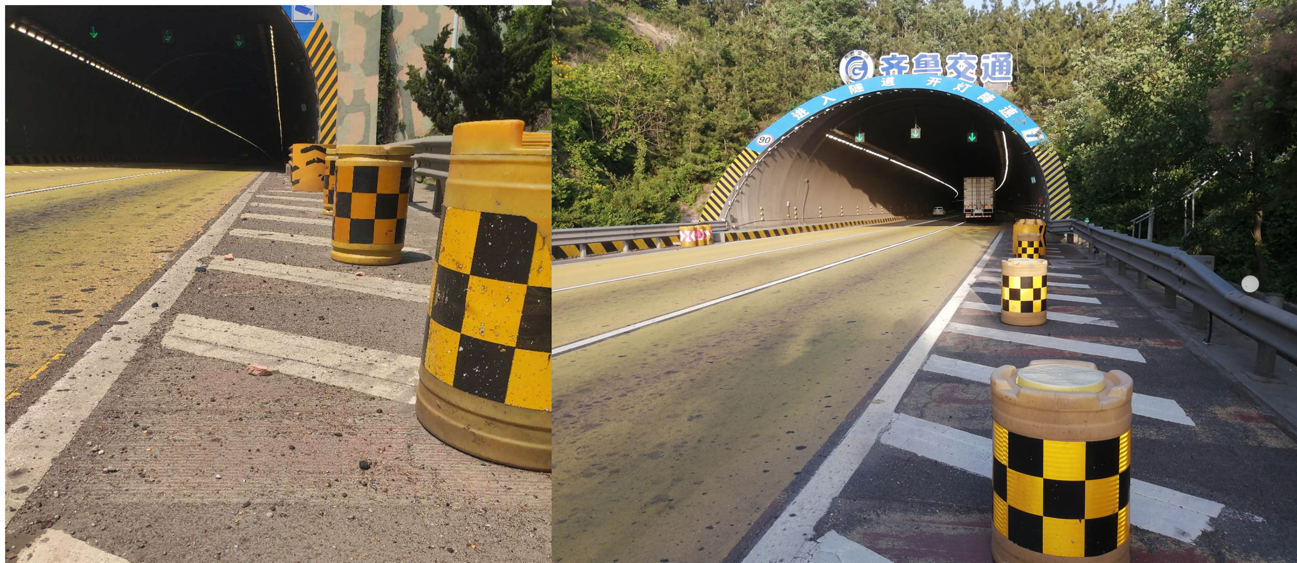 整理、擦拭、清理隧道口的防撞桶及散落的石子碎料