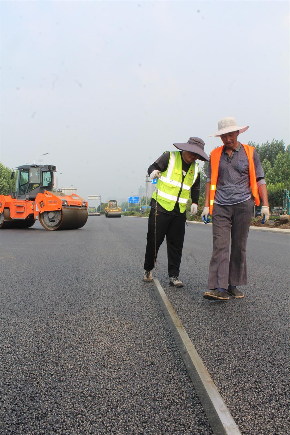 早晨天剛亮他們就已經從駐地出發(fā)了,炙熱的太陽下、火一樣的高溫,160度的瀝青料攤鋪現場,滾燙的瀝青混凝土上,看著一張張堅毅、樂觀的笑臉,一個個身著反光服的小伙子,伸手一摸衣服,竟然早被汗水濕透了,汗水滴到腳下,瞬間就沸騰揮發(fā)沒了,問一句:熱嗎?回答:熱,習慣了。就是簡短的一句,再無需多言!聯通路提升改造工程工期因大型社會活動,被人為縮短,工期時間雖緊質量卻不能放松,小伙子們的回答是:“上一個工程質量優(yōu)秀,這個工程質量必須超越上一個工程”。日復一日,高溫里他們依然在為了心中的目標堅持和堅守。