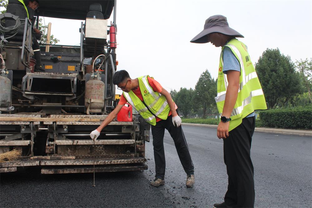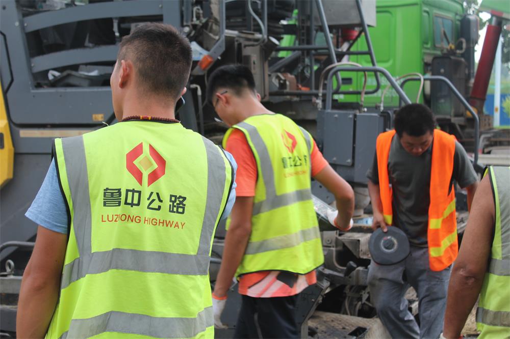 山東魯中公路第三工程公司瀝青施工隊,是一群由經驗豐富的老員工與年輕技術員搭配組成的施工隊伍。2020年8月氣溫高于往年,瀝青工程隊戰(zhàn)高溫斗酷暑,對年輕的隊伍來說那就不能不算是個事。瀝青路面施工隊以品質立命,看似簡單瀝青路面密實、平整、順、滑、無積水的要求,卻無不透出對瀝青攤鋪施工的高標準嚴要求……