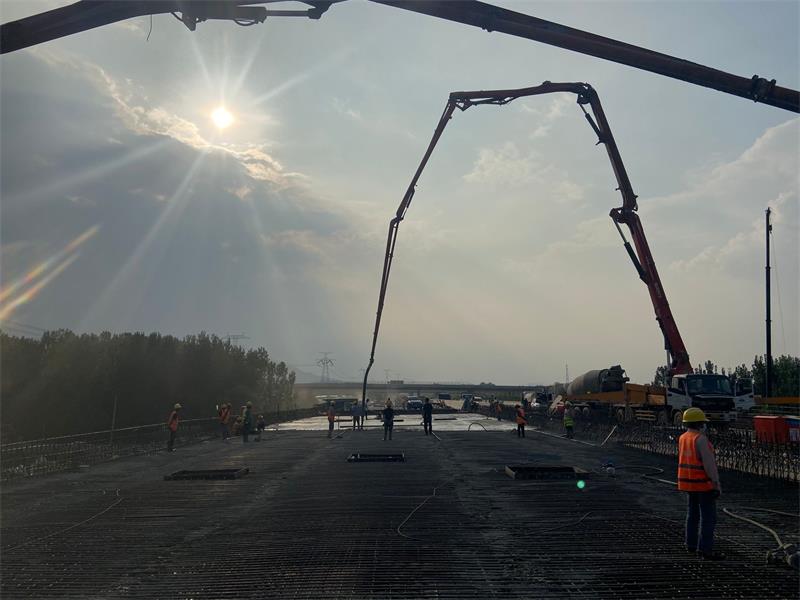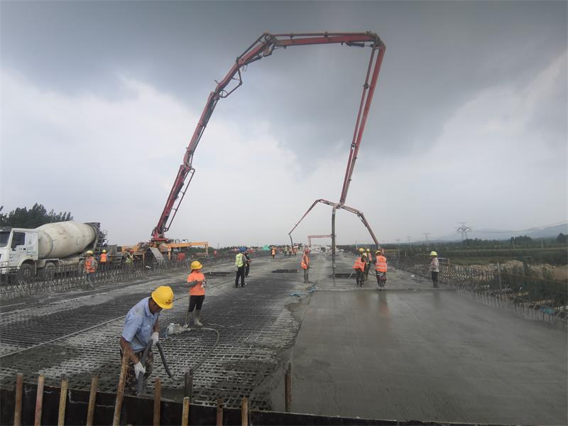 澆筑前,項(xiàng)目部組織召開興隆莊特大橋現(xiàn)澆箱梁澆筑專題會議,從鋼筋綁扎、模板安裝、混凝土原材料檢驗(yàn)質(zhì)量控制及配合比優(yōu)化、機(jī)械設(shè)備和人員配置等方面做了充分的準(zhǔn)備工作。制定值班表,落實(shí)領(lǐng)導(dǎo)帶班、技術(shù)人員全程盯控管理。同時(shí),安排12輛混凝土罐車趕赴施工現(xiàn)場,保證混凝土澆筑任務(wù)。在施工現(xiàn)場,2臺泵車同時(shí)澆筑,循環(huán)作業(yè),大大節(jié)約了施工時(shí)間,保證混凝土澆筑質(zhì)量。各部門各司其責(zé),全員待命,充分發(fā)揮拼搏、奉獻(xiàn)的企業(yè)精神。