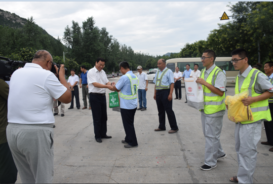 慰問會上,劉蓬、翟乃利、王興等領(lǐng)導首先詳細了解了施工人員、農(nóng)民工們的勞動保護、安全生產(chǎn)保障、工作時間、飲食等情況,向他們轉(zhuǎn)達了市交通局、市公路局以及市總工會的親切慰問。并叮囑各單位負責人要做好防暑降溫工作,根據(jù)氣溫情況,適當調(diào)整工作時間,科學合理安排作息時間,為一線施工人員營造一個良好的工作環(huán)境,確保一線員工在高溫天氣下的安全和健康,做到工作防暑“兩不誤”;希望廣大一線員工在高溫季節(jié)一定要注意休息,做好自我調(diào)節(jié),做到勞逸結(jié)合,采取一些必要防暑舉措。