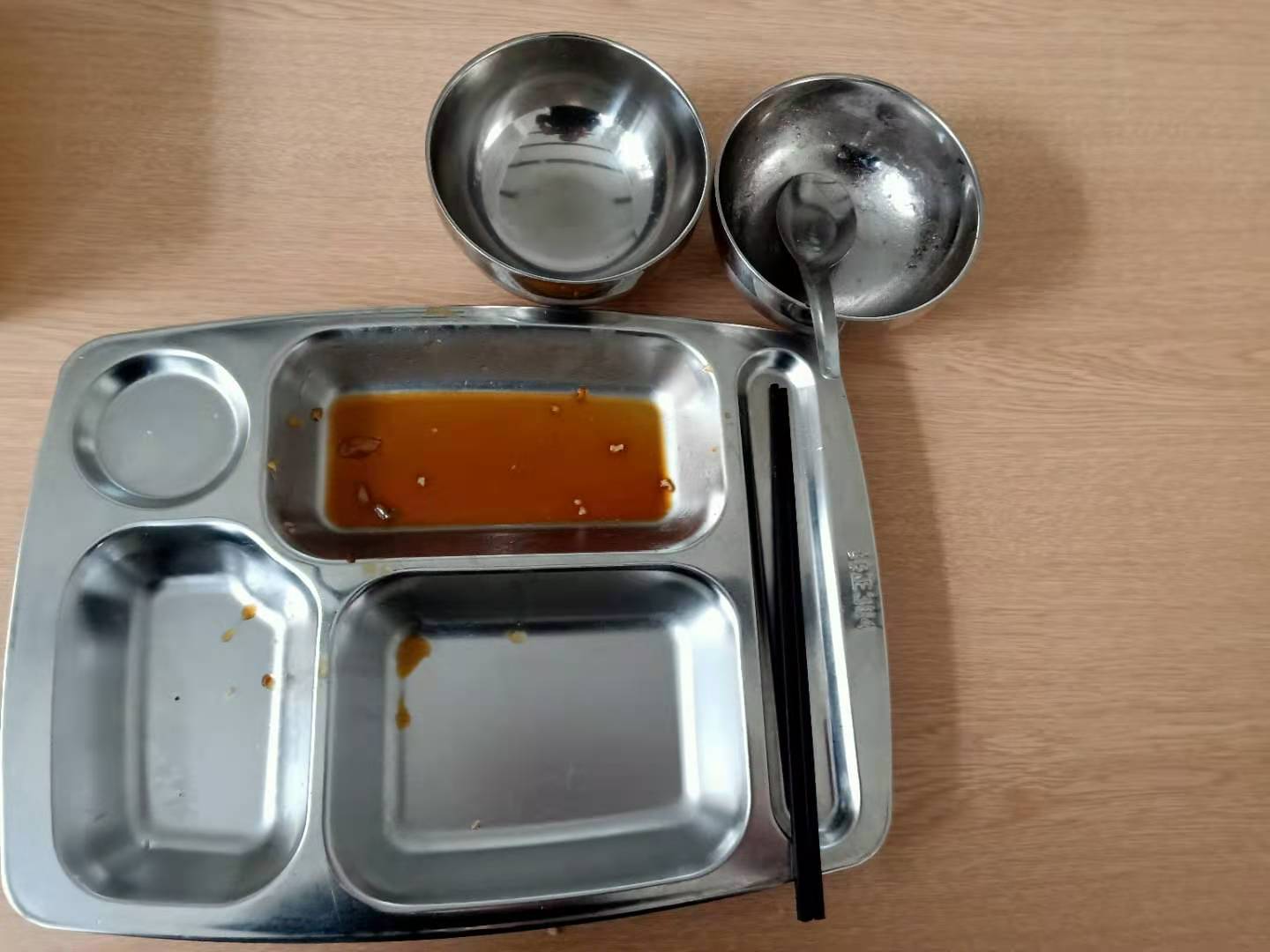 整潔的就餐環(huán)境,嶄新的明廚亮灶,還有熟悉的人,唯一變化的就是現(xiàn)在就餐改為自助餐,自從就餐實行自助餐以來,每個人的餐盤和碗里最大的變化就是光盤,以前的時候,每個人不論飯量大小,不論男女老少,都一樣的量,有的不夠吃,有的吃不了。現(xiàn)在好了,按需分配,吃多少盛多少,每個人可以按自己的口味和喜好盛自己中意的飯菜。這樣,既節(jié)約不浪費,又滿足了每個人的胃口。飯中有湯,還有餐后水果。一切都顯得那么高大上,又都顯得那么自然,每個人吃完都端著空空如也的餐盤放到指定位置,順手把餐桌打掃干凈,把餐椅拖到桌下就位,彰顯著魯中公路人的素質(zhì)!