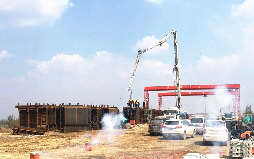 2019.06.26  樁基混凝土澆筑累計完成100顆。同時,綜合性預(yù)制場建設(shè)完成,正式投入使用。