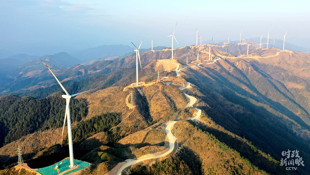 廣西柳州,三江侗族自治縣大力發(fā)展清潔能源產(chǎn)業(yè),一字排開的風力發(fā)電機成為侗鄉(xiāng)新地標。