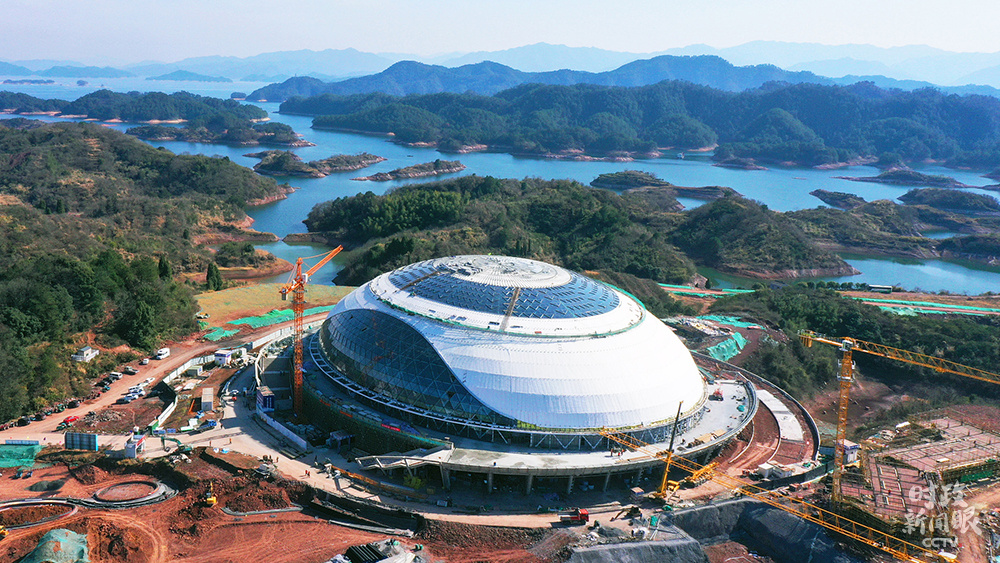 2021年1月10日,浙江杭州,2022年亞運會淳安場地自行車館正加緊建設中,爭取2021年3月底前完成竣工驗收。