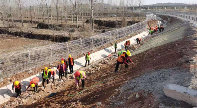 2月23日,青蘭萊泰項目進行邊坡、邊溝修整施工。
